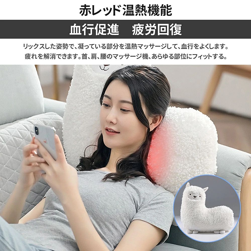マッサージ機 癒しグッズ 温熱 首 肩 腰 背中 太もも 肩もみ 肩こり 抱き枕 枕 ぬいぐるみ プレゼント ギフト アニマル グッズ 可愛い クッション もみ玉 アルパカ ラマ カーアダプタ 実用的