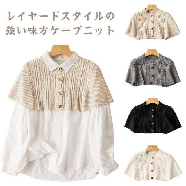 マント 薄手ニット カーディガン風 ニット 冷房 ショート丈 ベスト つけえり ストール ショール 春夏秋 レディース 肩掛け ニットトップス エレガント おしゃれ ケープ ファッション 肩 冷房対策