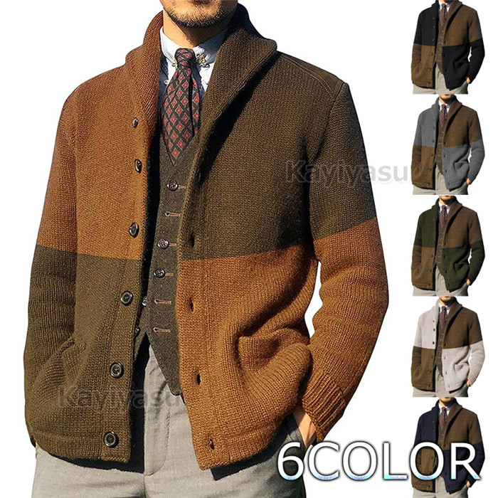 カーディガン メンズ ニットコート 羽織 かっこいい ニットジャケット アウター 前開き ゆった感 カジュアルコート 切り替え オシャレ 春秋冬コーデ セーター生地 トップス 欧米風 紳士服 男性用