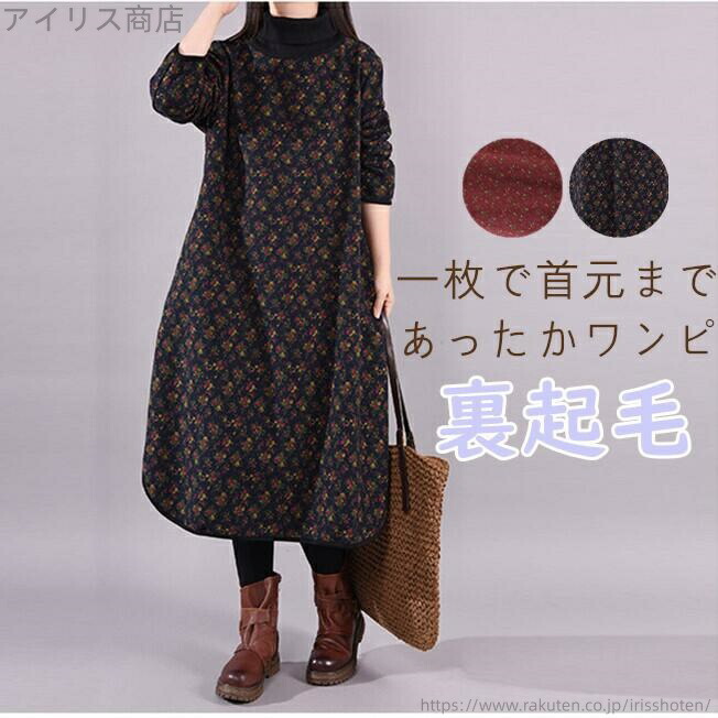 ワンピース 裏起毛ワンピース 秋冬物 裏ボアワンピ ロングワンピ