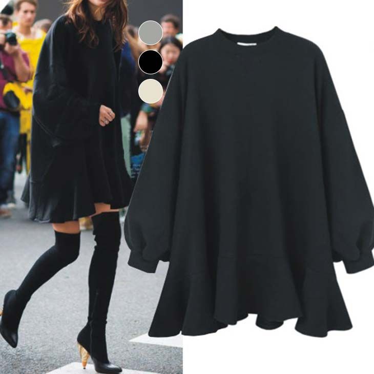 2023秋冬新作 トレーナー 裾フリル 大きめ オーバーサイズ 長袖 トップス カジュアル ゆったり 体型カバー おすすめ オシャレ プチプラ 韓国ファッション レディース