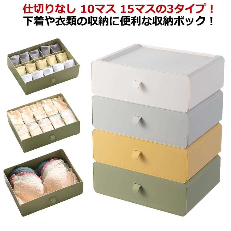 ランジェリー 下着 下着収納ボックス イエロー グリーン ホワイト グレー 仕切りなし 10マス 15マス