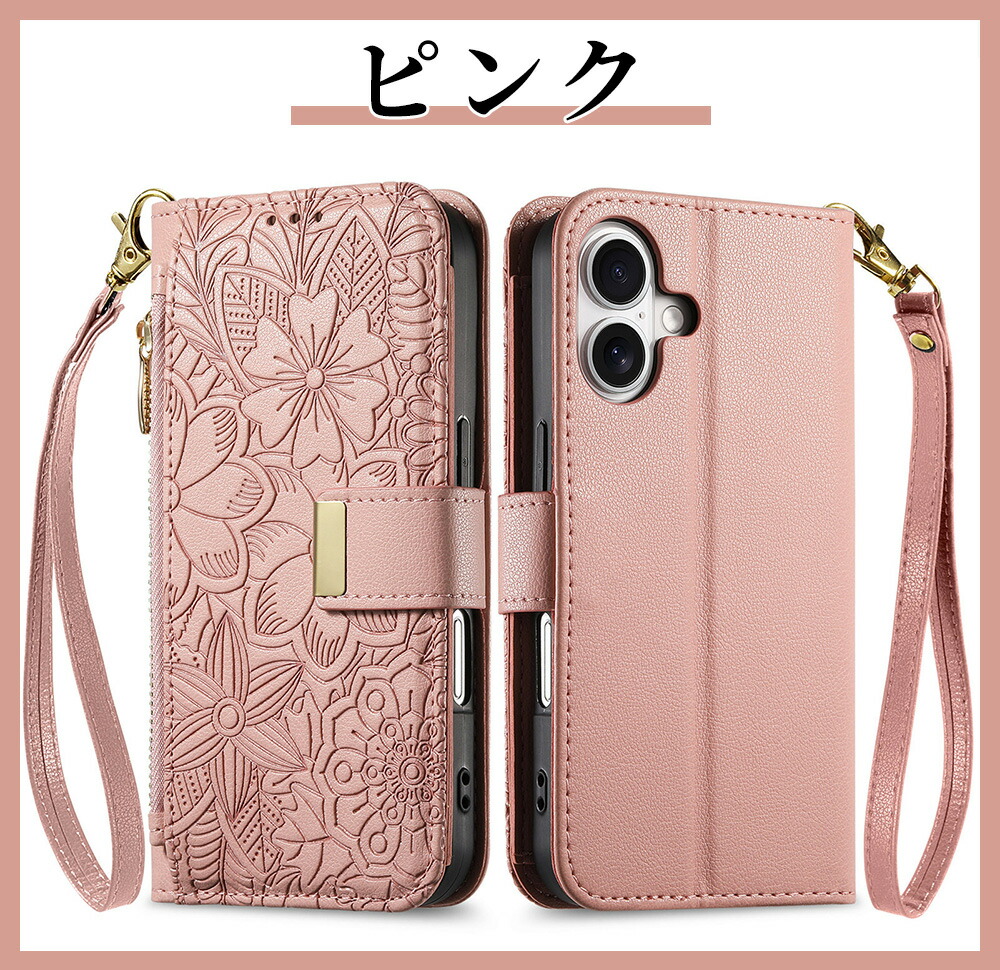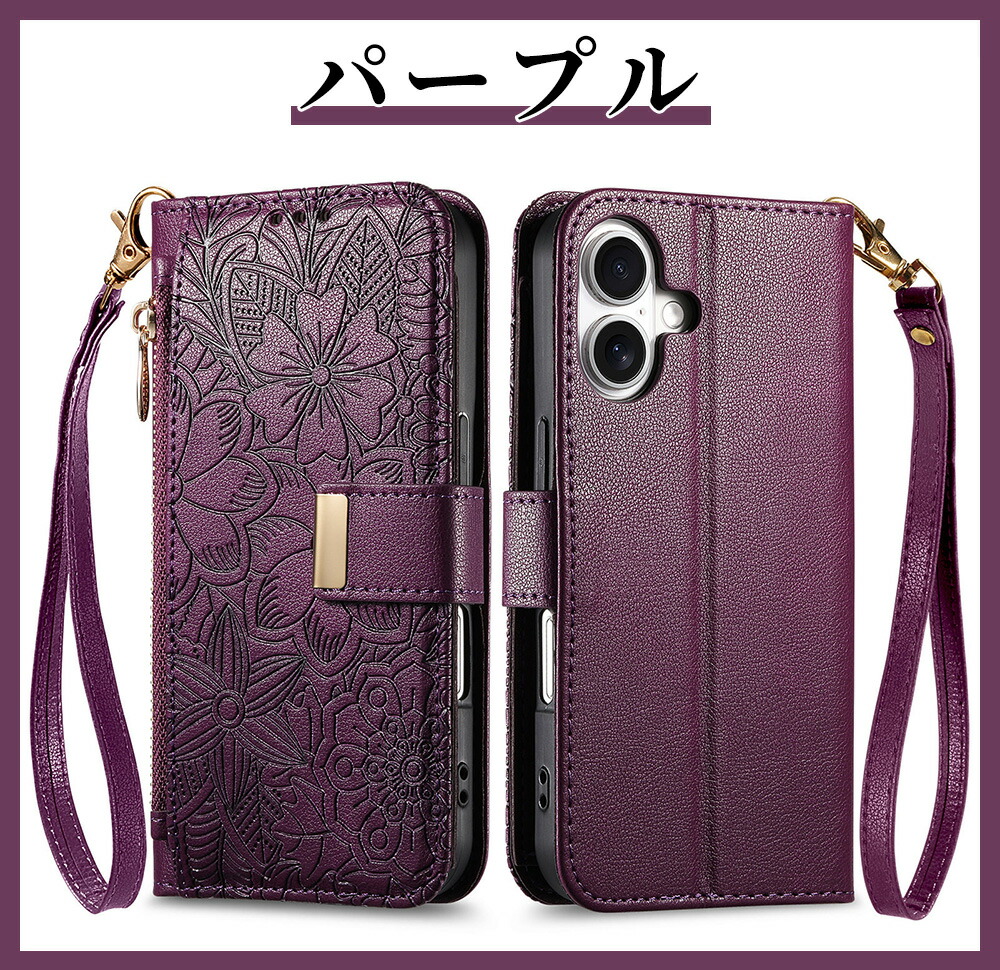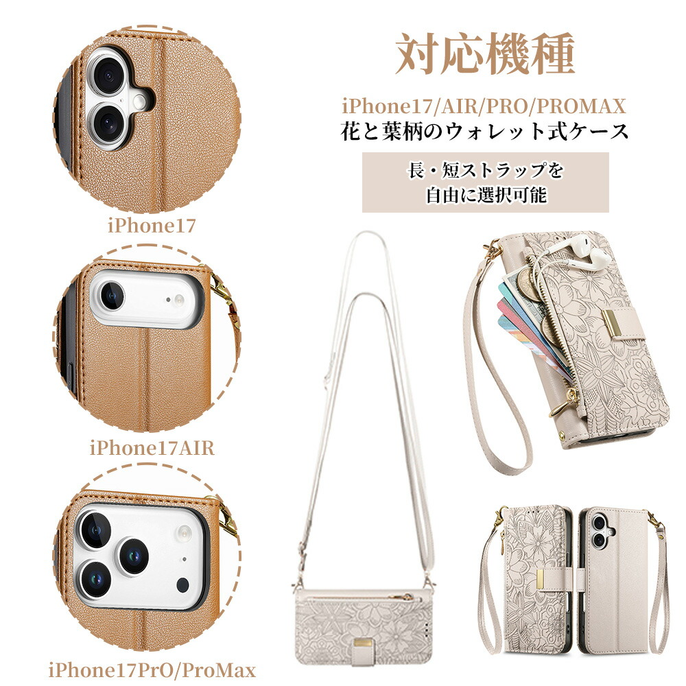 iPhone17Pro ケース iPh スマートフォン タブレット 人気 ブラウン ピンク パープル グレー ブラック 短いストラップ 短いストラップ+長いストラップ