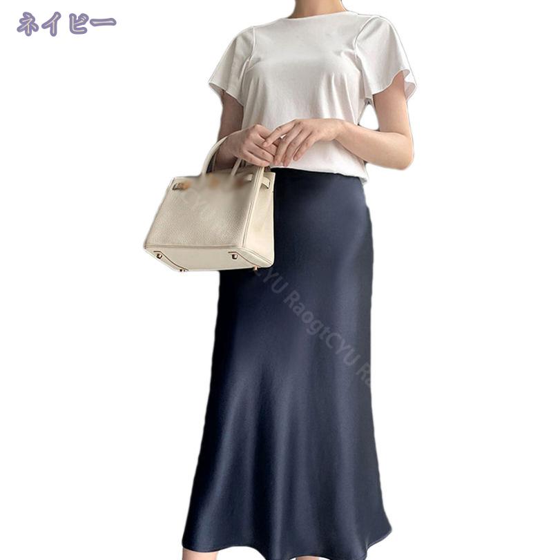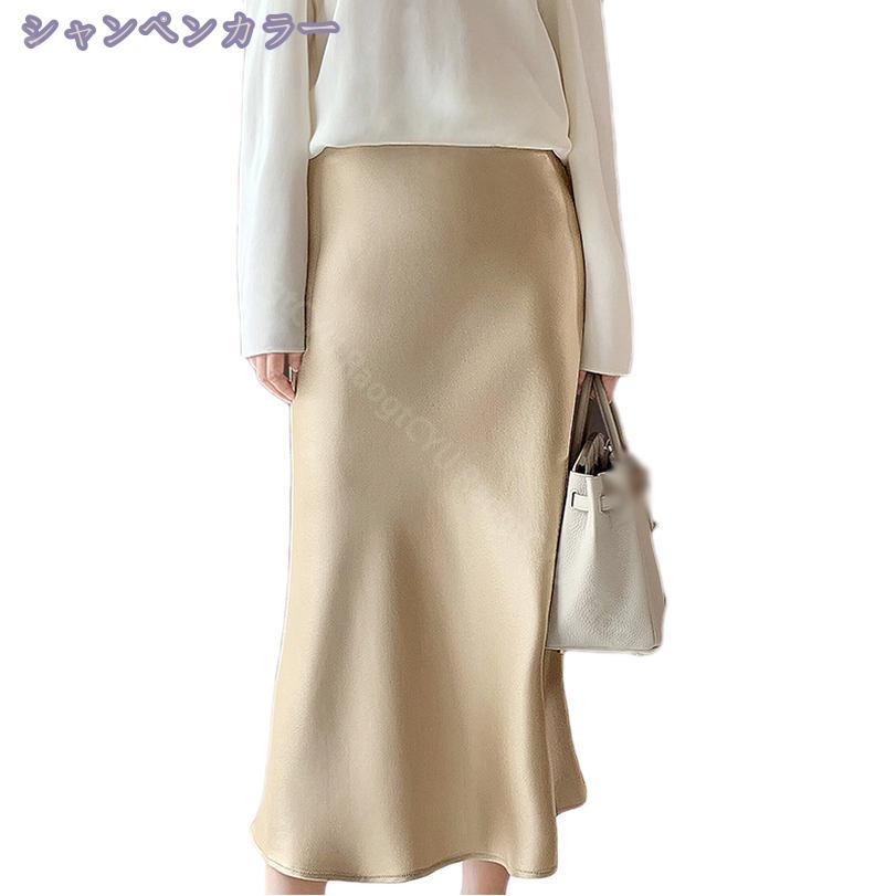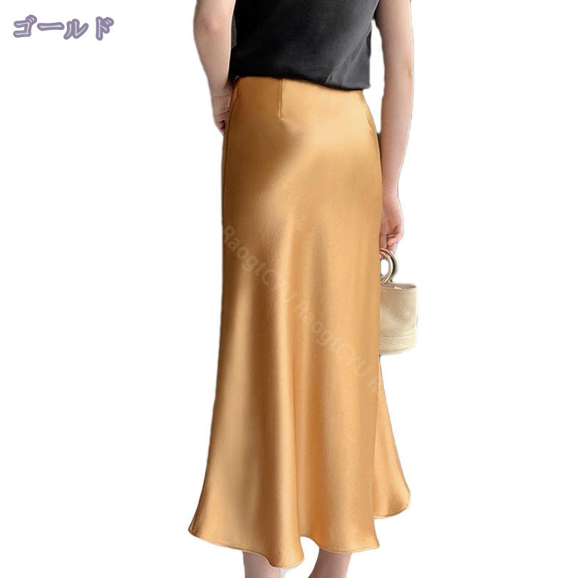 スカート レディース フレアスカート 春夏 光沢感 マーメイドスカート シルキー ロングスカート サテン 知的 上品 エレガント 無地 aライン サテンナロースカート カジュアル OL 仕事 サ 通勤