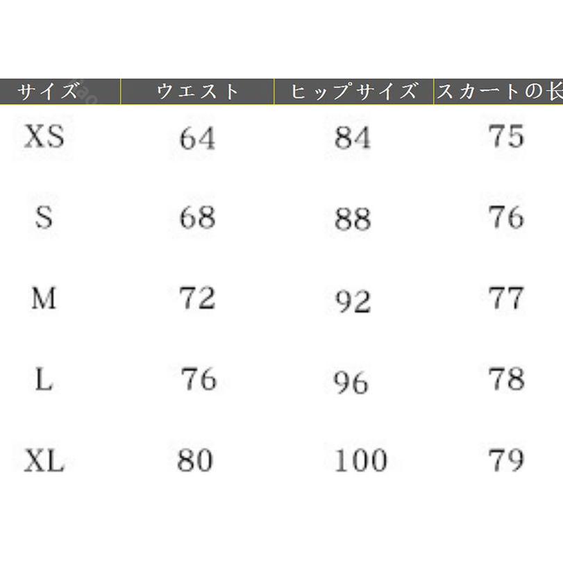 XL:スカート丈約79cm、ウエスト80cm、ヒップ100cm。