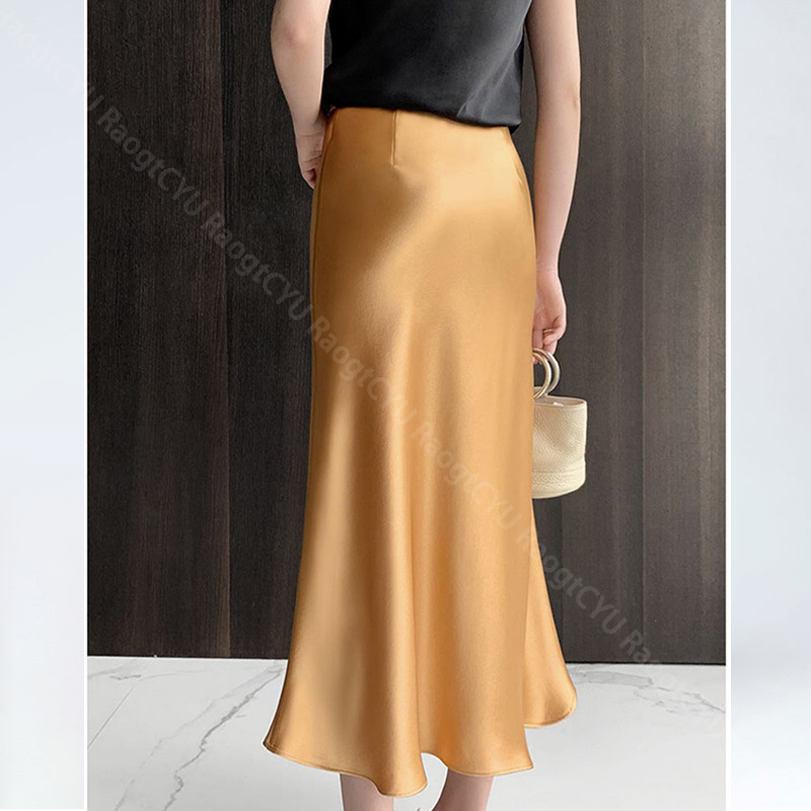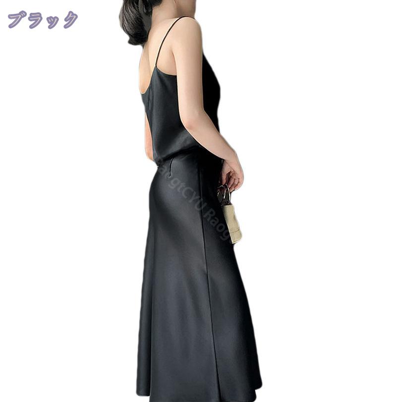 カジュアル ドレス 春 秋 夏 フレアスカート サテン マーメイド フレアスカート スカート 光沢 フェミニン 美ライン 通勤 OL 仕事 ロングスカート
