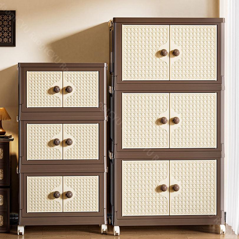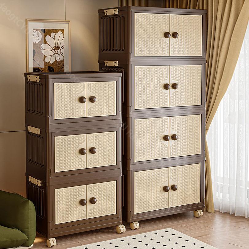 使わない時に折りたたんで収納できます。スペースを取りません。前面も扉付き、収納にとても便利です。上にふた付き、物を入れやすい。蓋をロックできます。物を取るは前面扉から、ボックスを積み重ねる状態にも楽に物を取り出して、伝統的な収納ボックスに比べてもっと便利で、機能性が向上します。