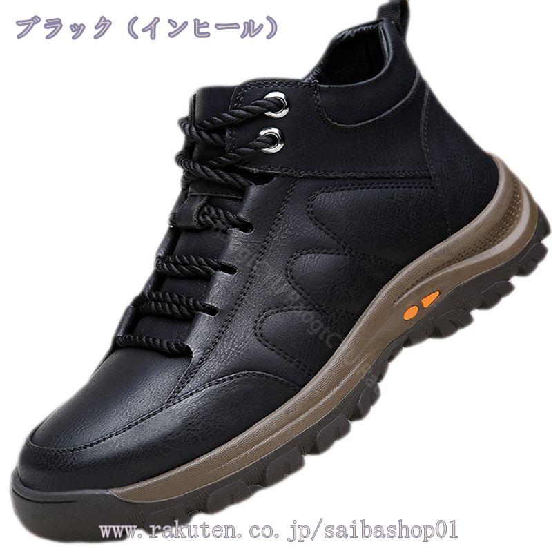 メンズ トレッキングブーツ 編み上げブーツ 秋冬 コンフォート 防水 スニーカー ブラック 通勤 通学 防滑 ショートブーツ ハイキング 軽量
