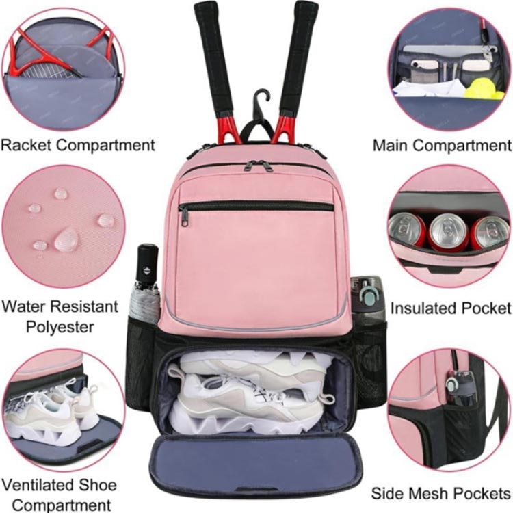 バドミントンラケットバッグ テニスバッ テニス ラケットバッグ 人気 ブラック ライトブルー ベージュ ピンク