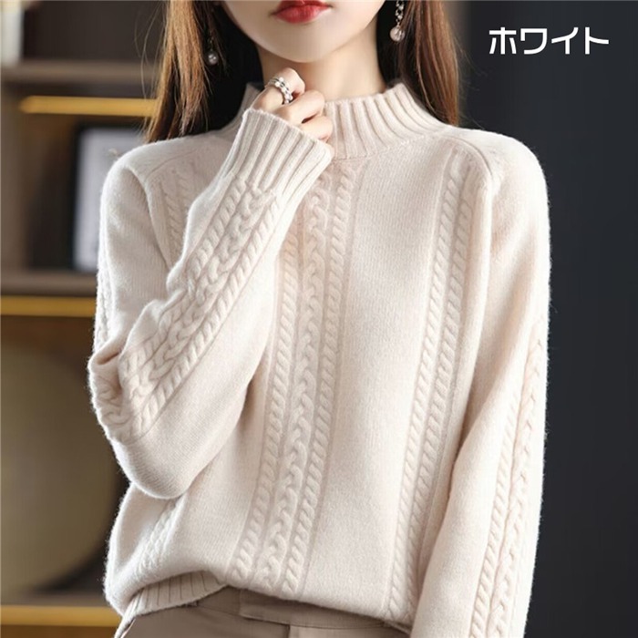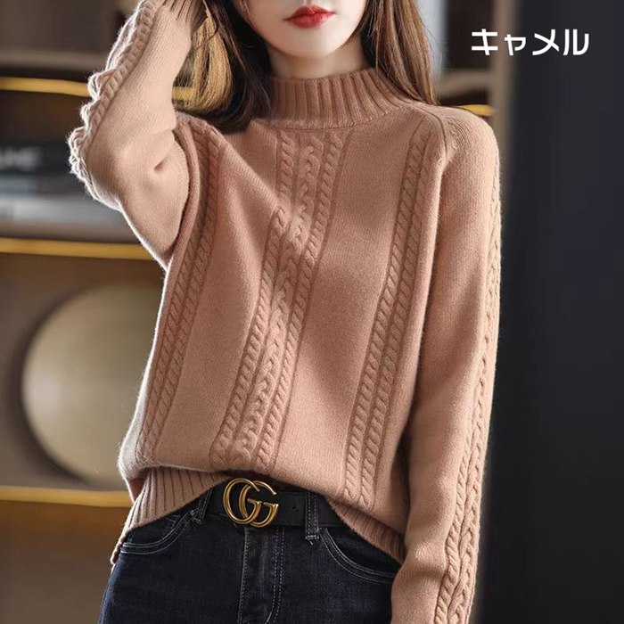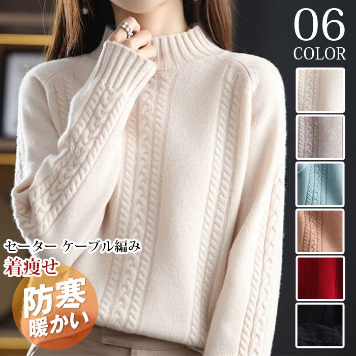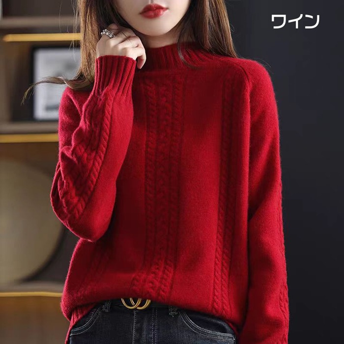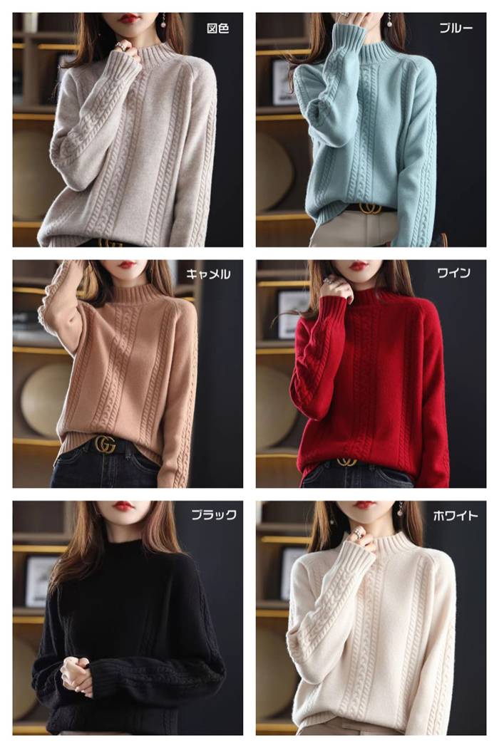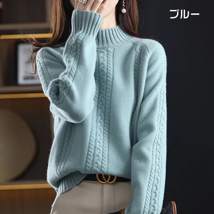 セーター ケーブル編み ハーフネック トップス ニット セーター セーター 豊富 図色 ブルー キャメル ワイン ブラック ホワイト