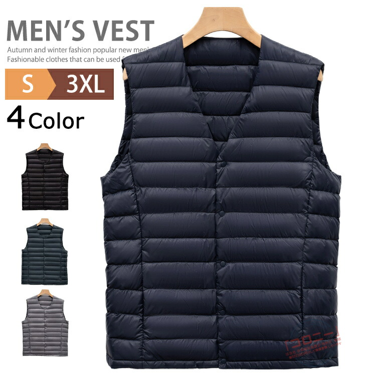 ダウンベスト メンズ インナーダウン メンズファッション 早い者勝ち S M L XL 2XL 3XL グレー 黒 ネイビー ビリジャン