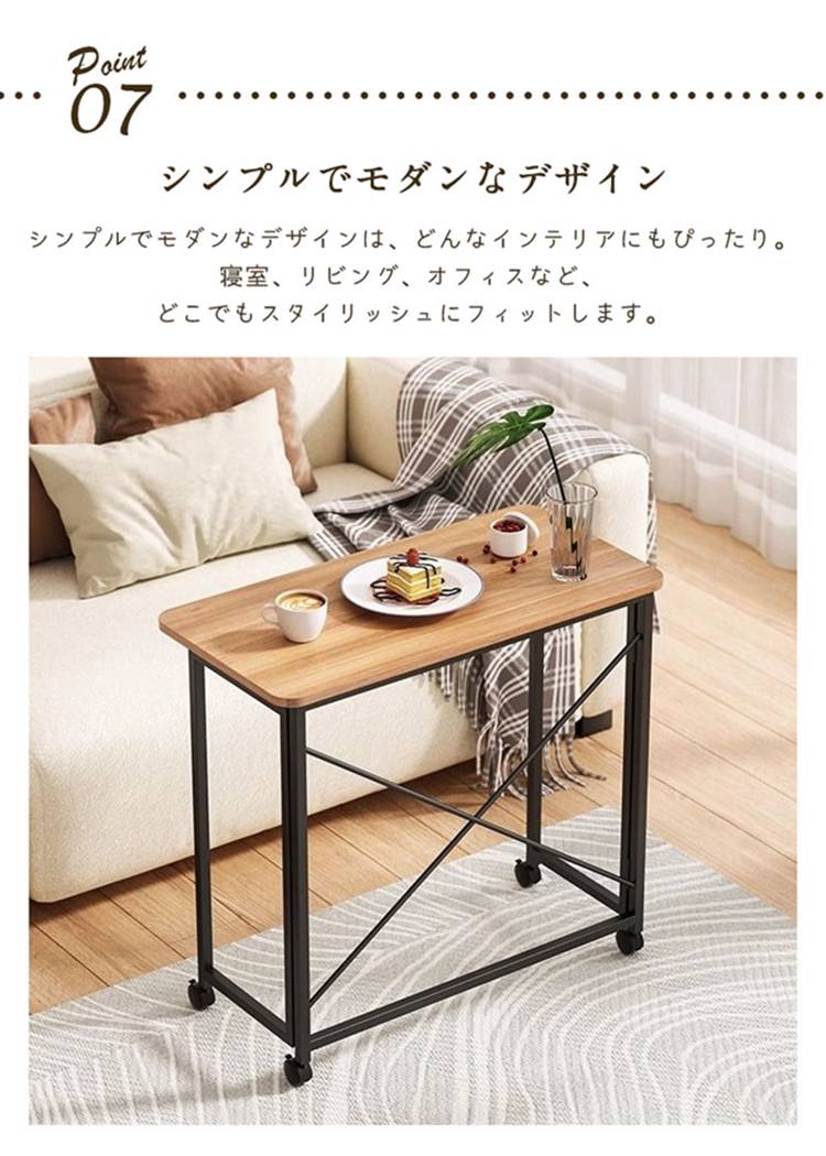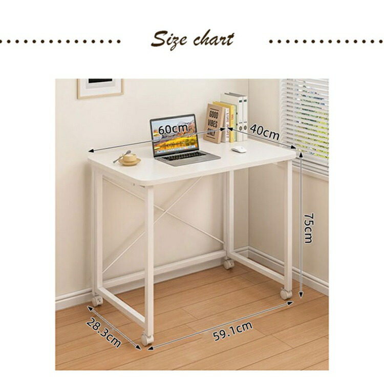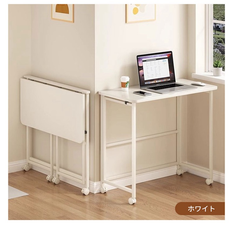 折りたたみデスク 木製 キャスター付き 木の目 ホワイト 60x40cm 80x40cm 100x50cm