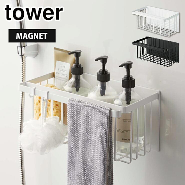 タワー マグネットバスルームバスケット バス用品 タオルハンガー 続々登場 ホワイト ブラック