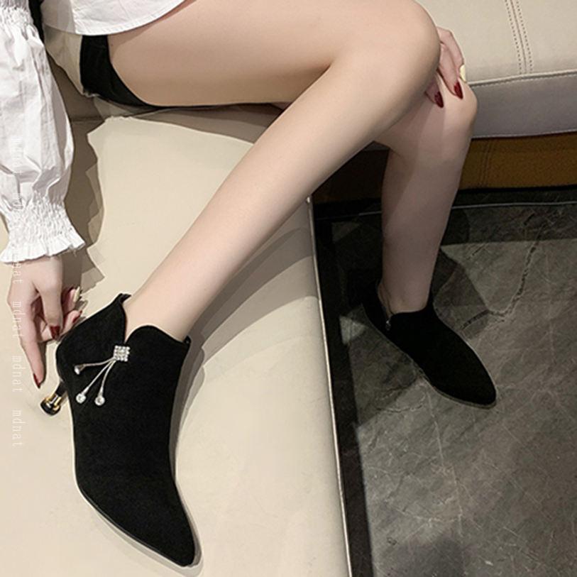 ショートブーツ レディース ヒール3.5cm 歩きやすい 疲れない 靴 ヒール スエード調 ブーツ 20代 30代 グリッター ショート ローヒール おしゃれ 女子会 旅行 サイドジ かわいい