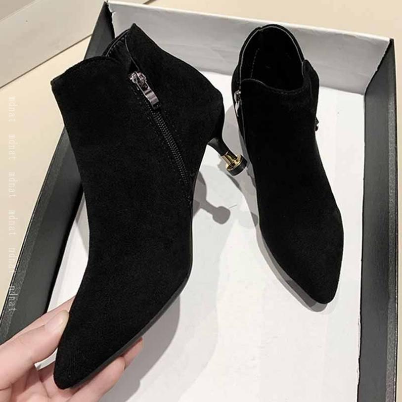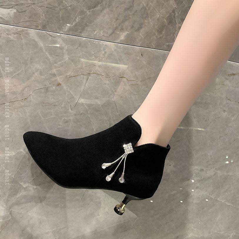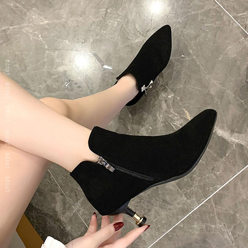 ブーティ レディース ピンヒール 大きいサイズ ショートブーツ ハイヒール 7.5cmヒール アンクルブーツ チャンキーヒール 痛くない 歩きやすい 灰色 紺 青 防寒