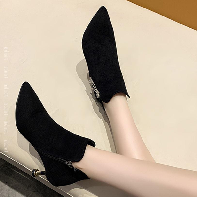 履くだけで足長美脚になれる可愛いアンクルブーツです!温かみのあるスエード調素材と絶妙シルエットで、女性らしく上品に。