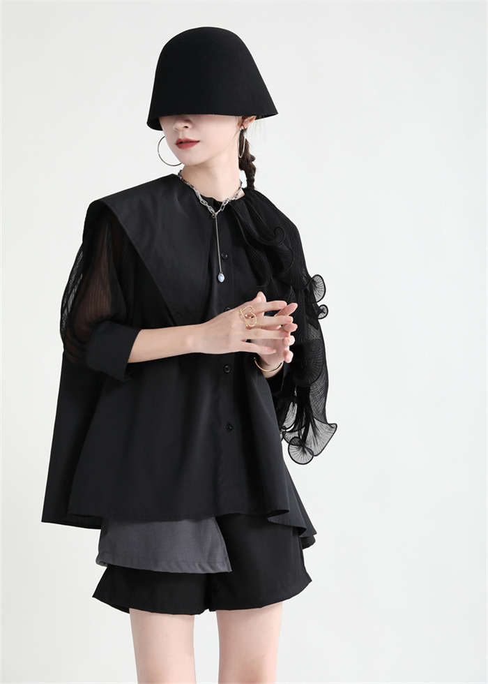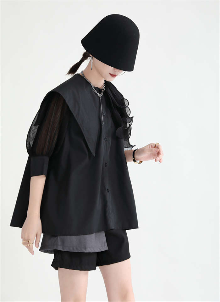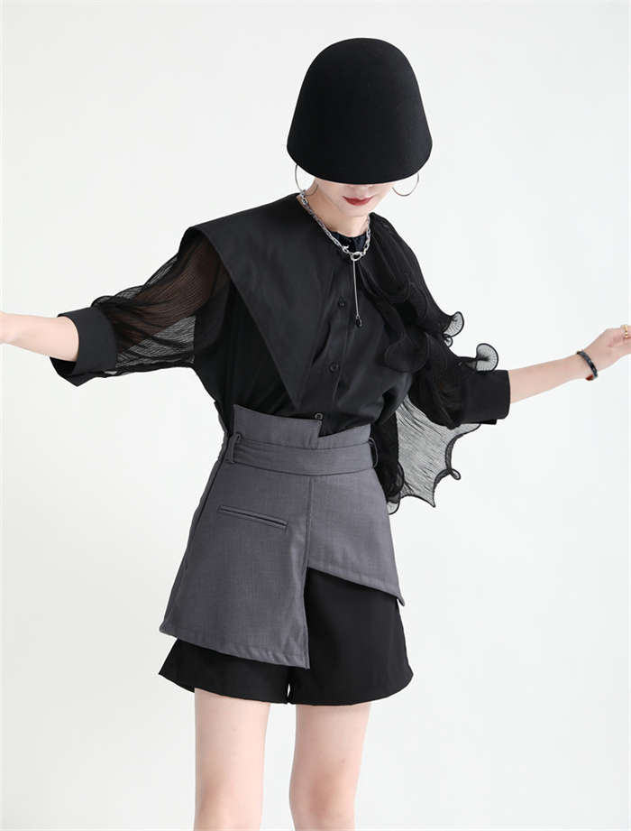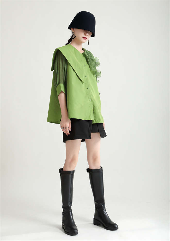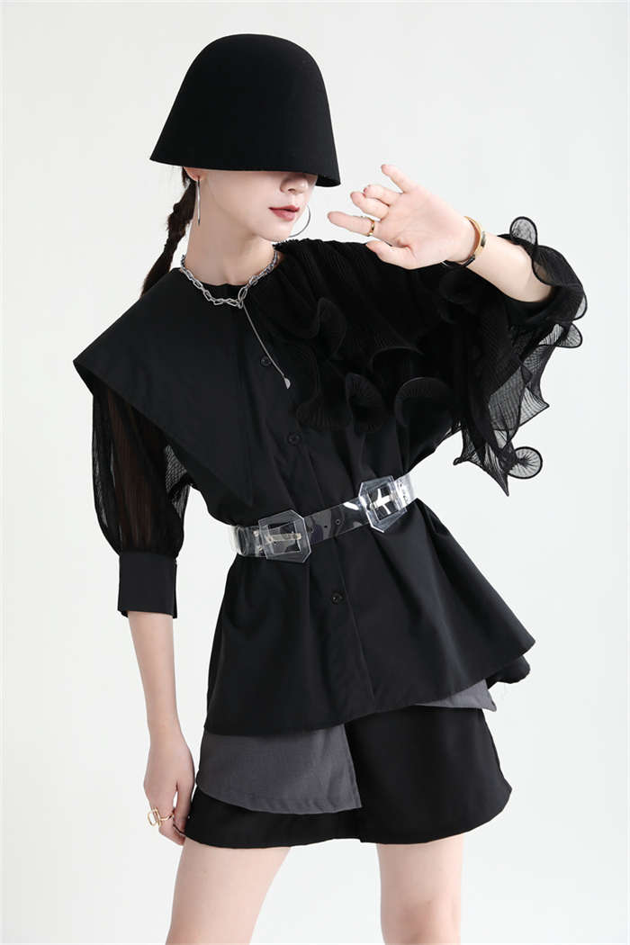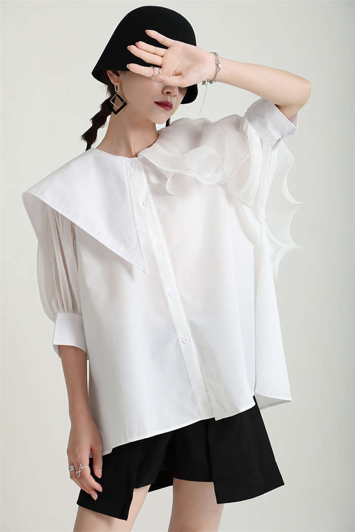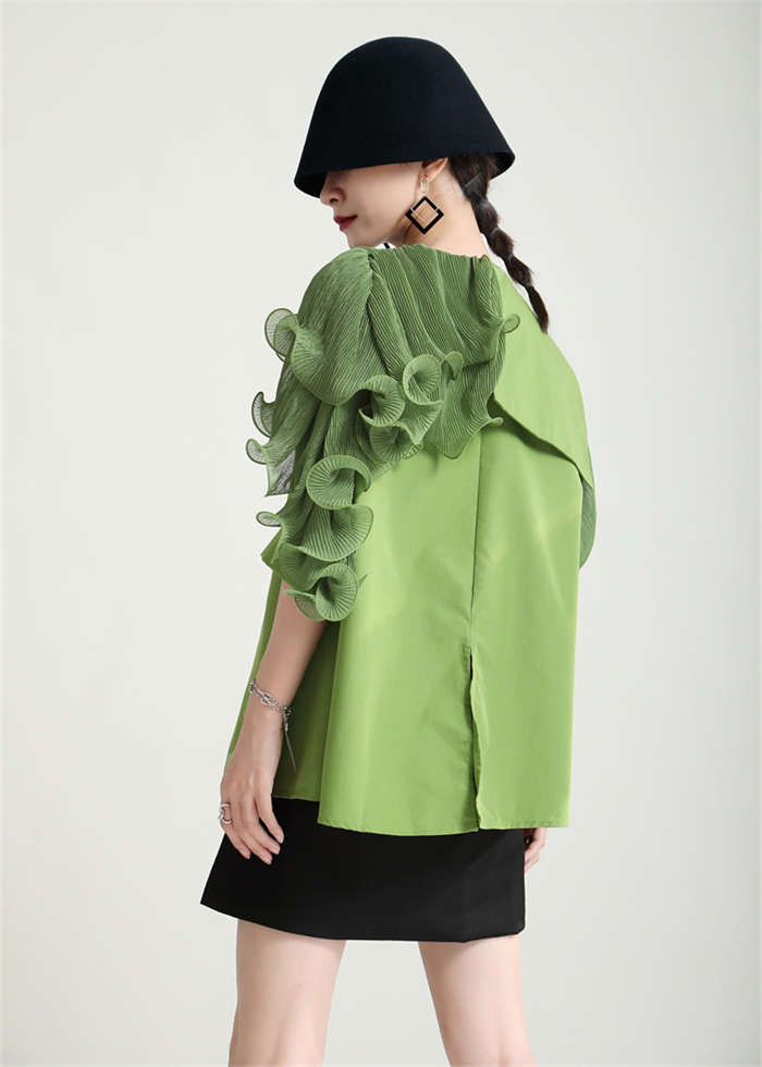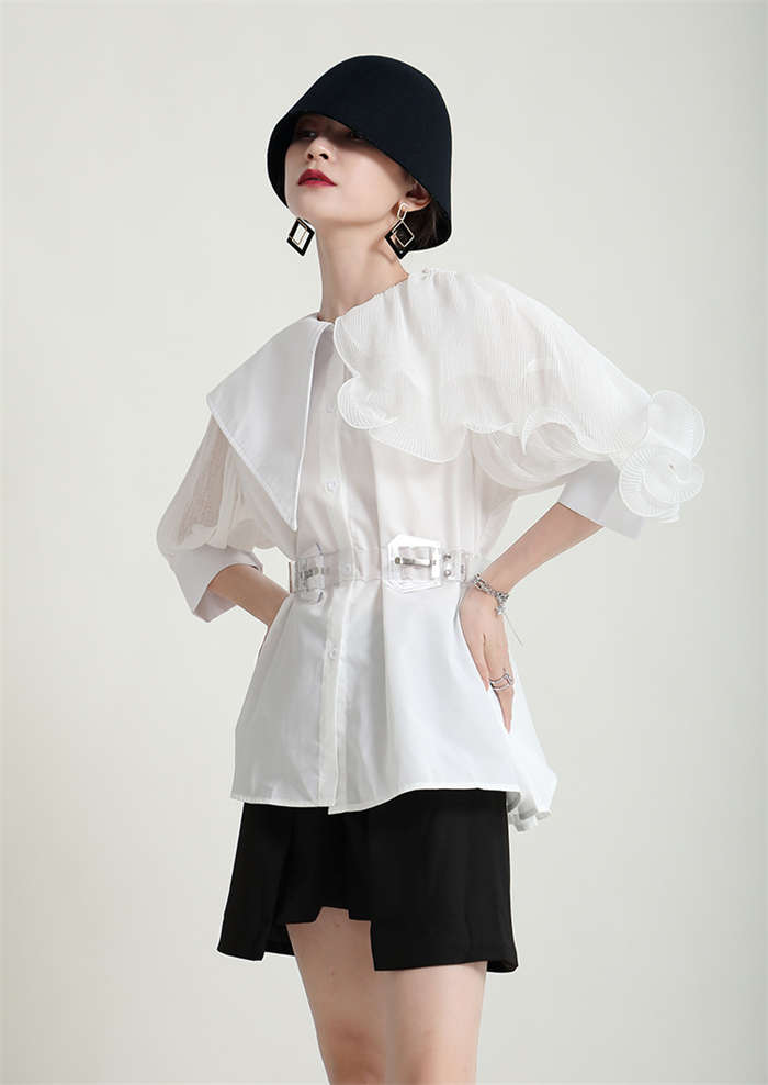 長袖追加 アシンメトリーフリルカラー トップス シャツ ブラウス 続々登場 ホワイト ブラック グリーン S M L