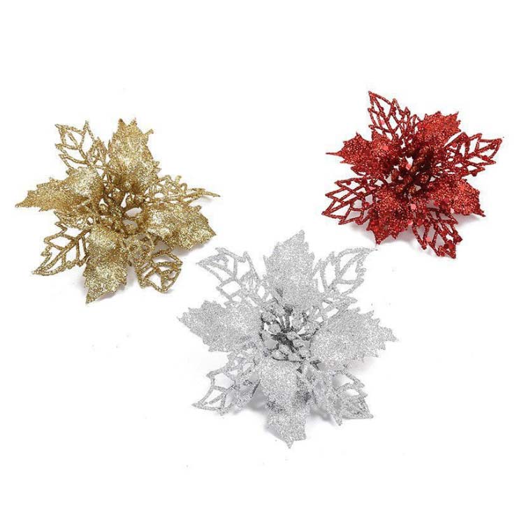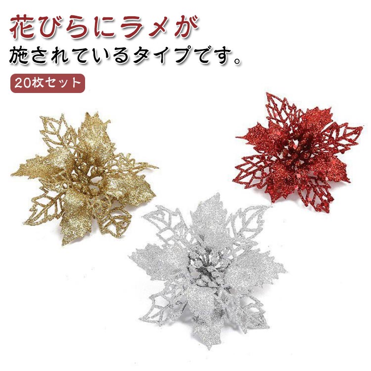 クリスマス オーナメント 飾り 造花 ゴールド シルバー レッド 3色ランダム