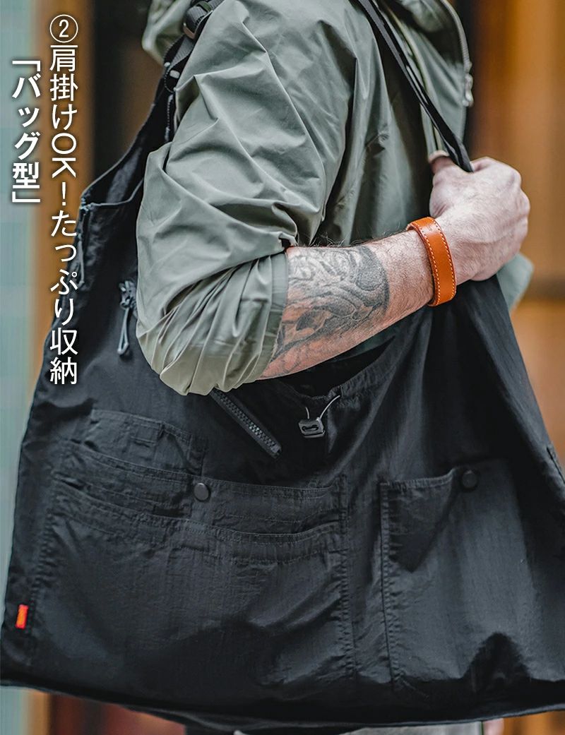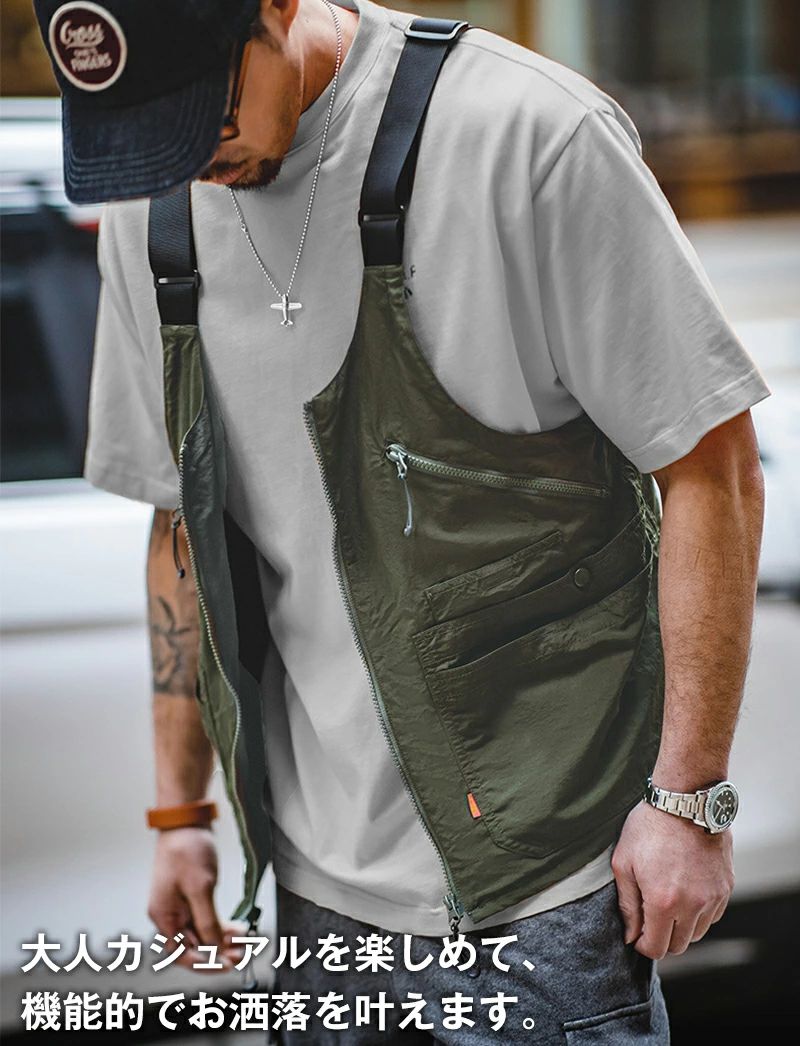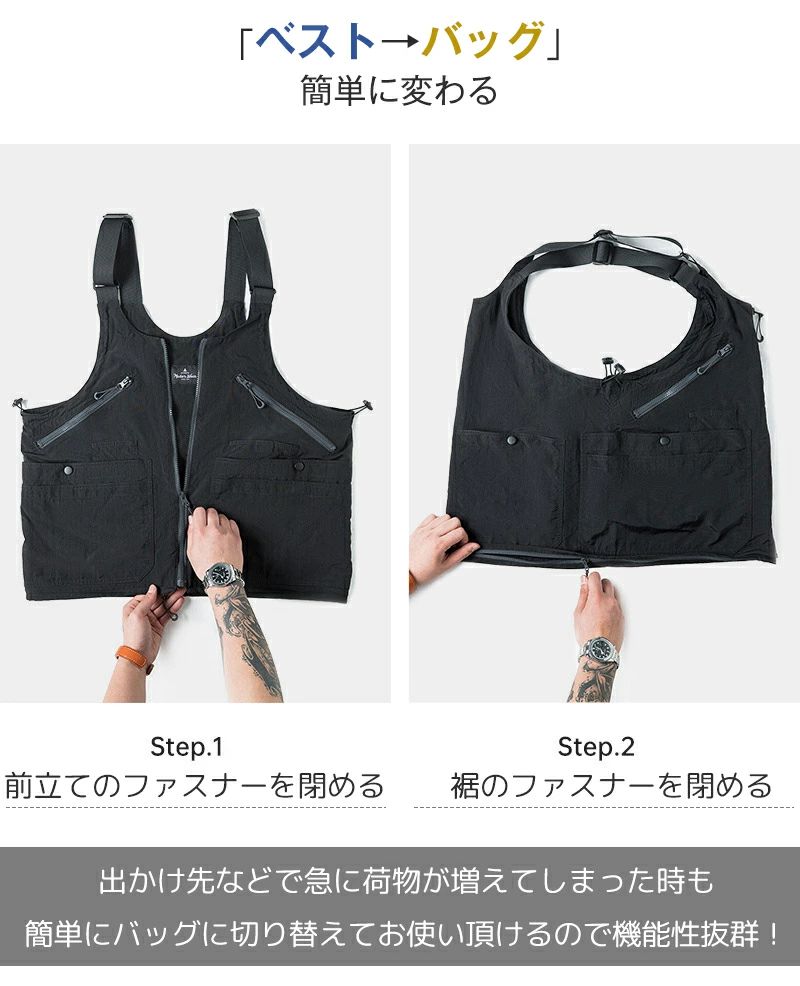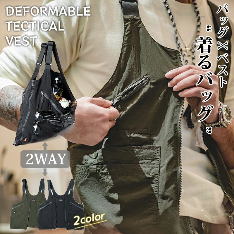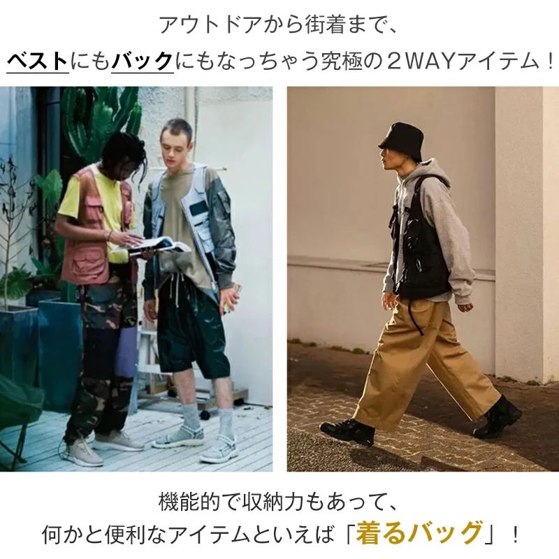 バッグ 機能ベスト 重ね着 2WAY トップス ベスト ジレ 豊富な品揃え グリーン ブラック
