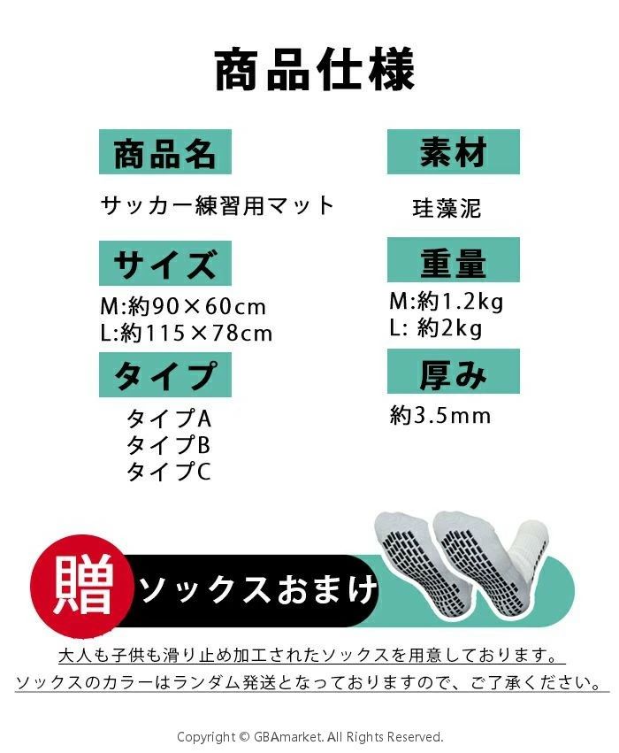 サッカーマット サッカー練習用マット サッカー フットサル フットサル その他 続々登場 タイプA(子供のソックスおまけ) タイプB(子供のソックスおまけ) タイプC(子供のソックスおまけ) タイプA(大人のソックスおまけ) タイプB(大人のソックスおまけ) タイプC(大人のソックスおまけ) M L