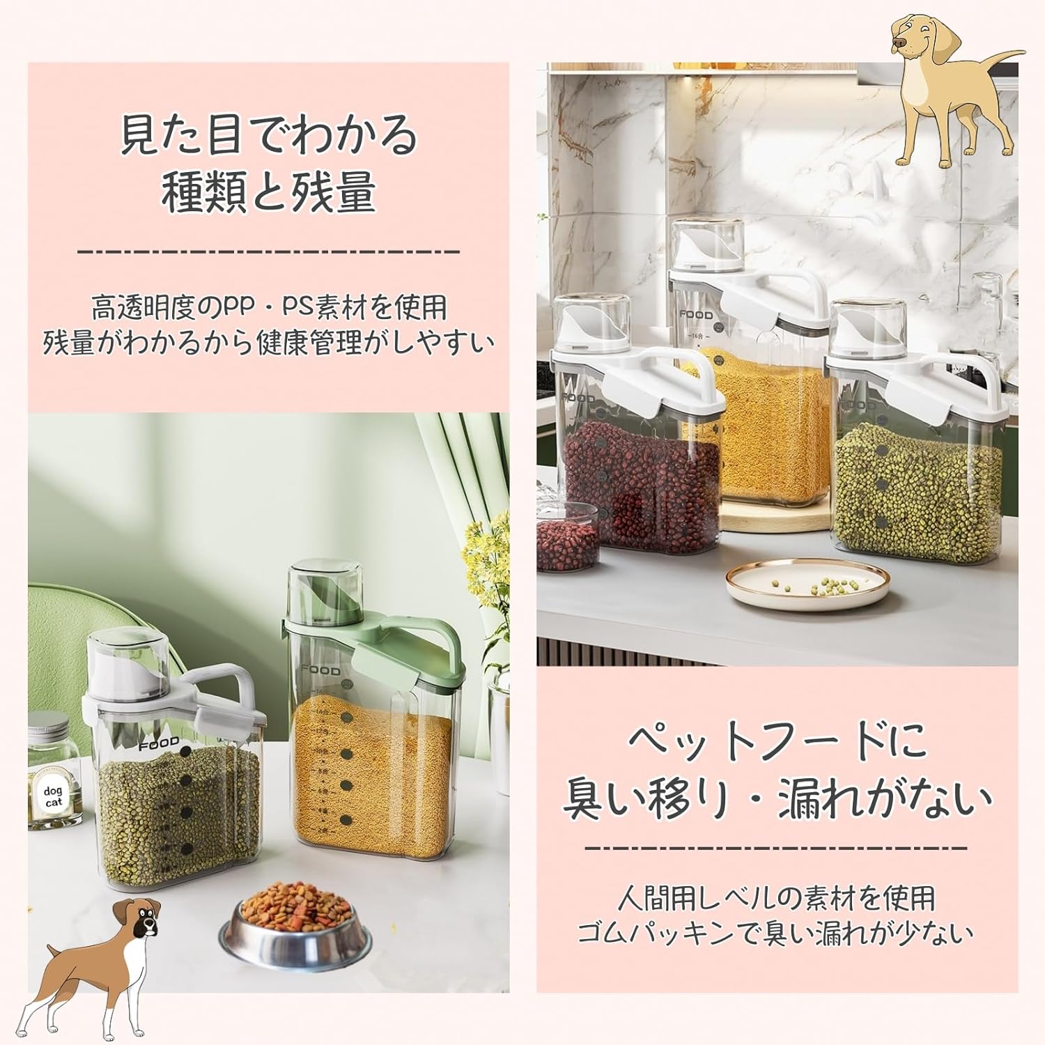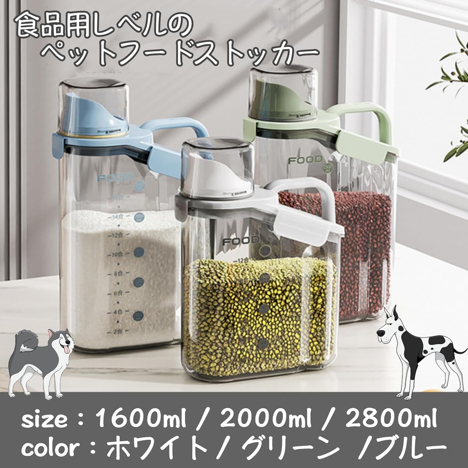 ペットフードストッカー 保存容器 密閉 ホワイト ブルー グリーン 1.6L 2.0L 2.8L