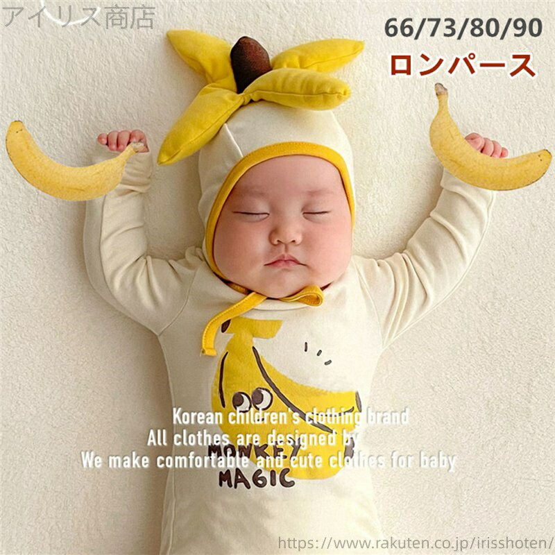 ロンパース バナナ 女の子 男の子 お ベビー ベビー服 ファッション カバーオール ロンパース 通販 66 73 80 90