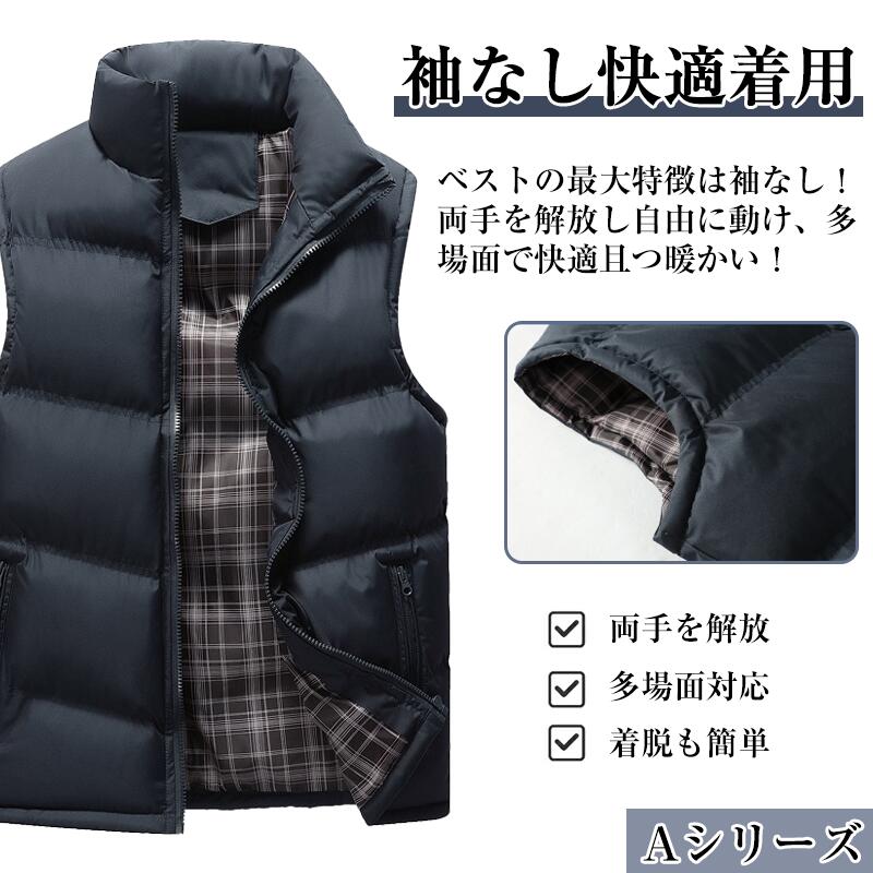中綿ベスト メンズ 男女兼用 ベスト 無地 高品質ダウン レディース 立襟 羽根 大きいサイズ アウター 防寒 軽量 暖かい フェイクダウン インナー 中綿ジャケット ジレ チョッキ おしゃれ コート