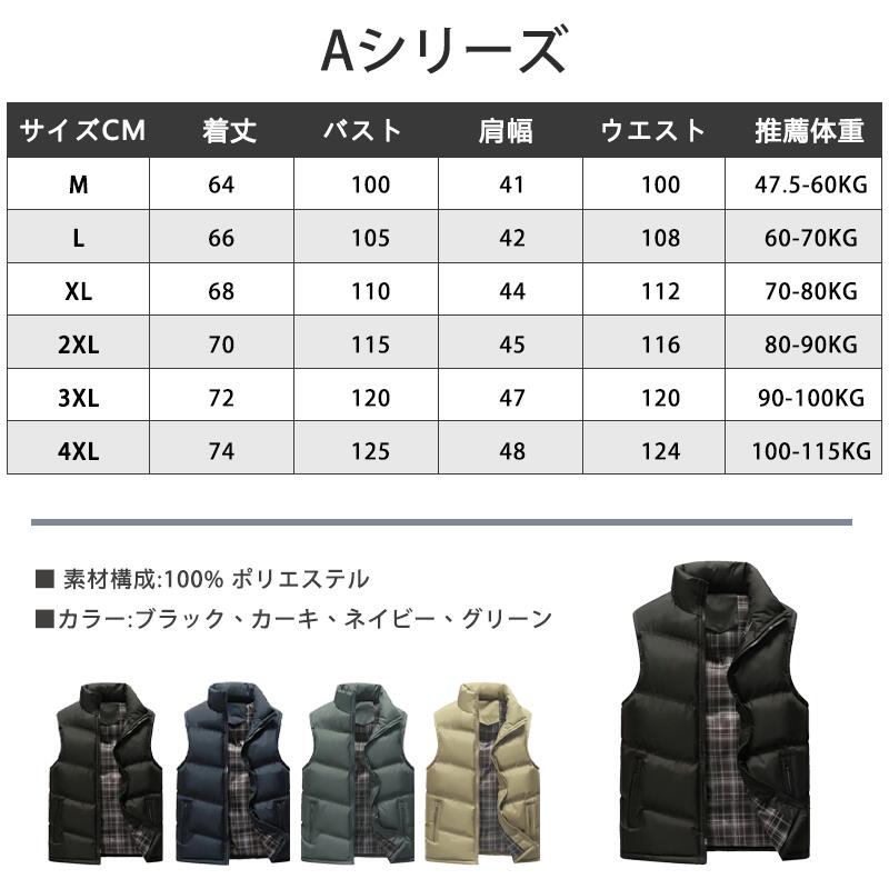 中綿ベスト メンズ 男女兼用 ベスト トップス ベスト ジレ 豊富 Aブラック Aネイビー Aグリーン Aカーキ Bブラック Bネイビー Bベージュ M L XL 2XL 3XL 4XL