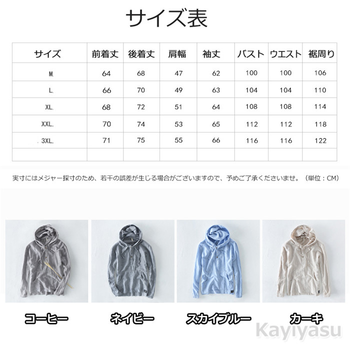パーカー 長袖 リネンシャツ 綿麻 個 メンズファッション 早い者勝ち コーヒー ネイビー スカイブルー カーキ M L XL 2XL 3XL