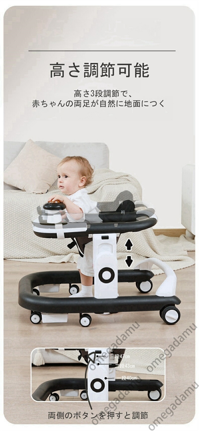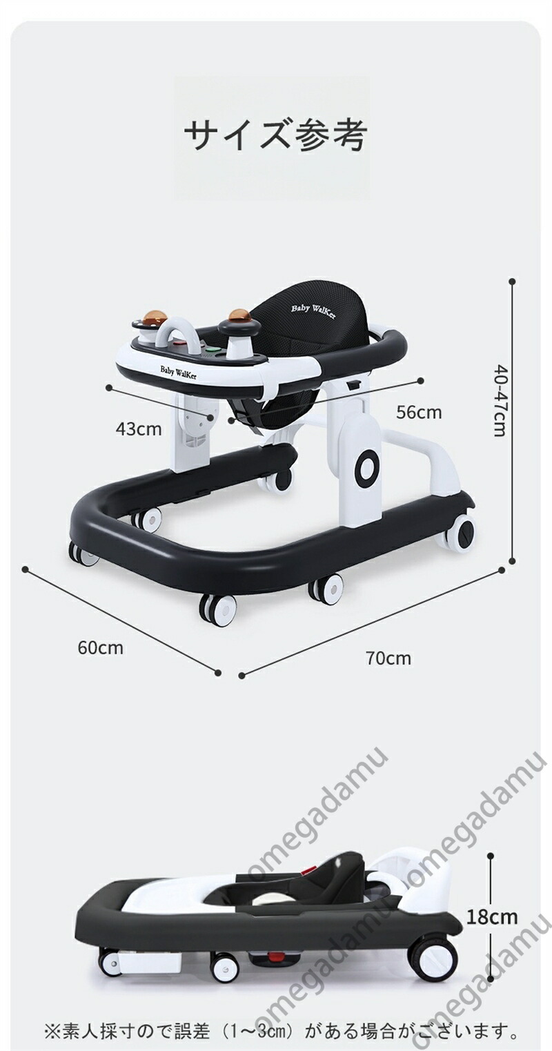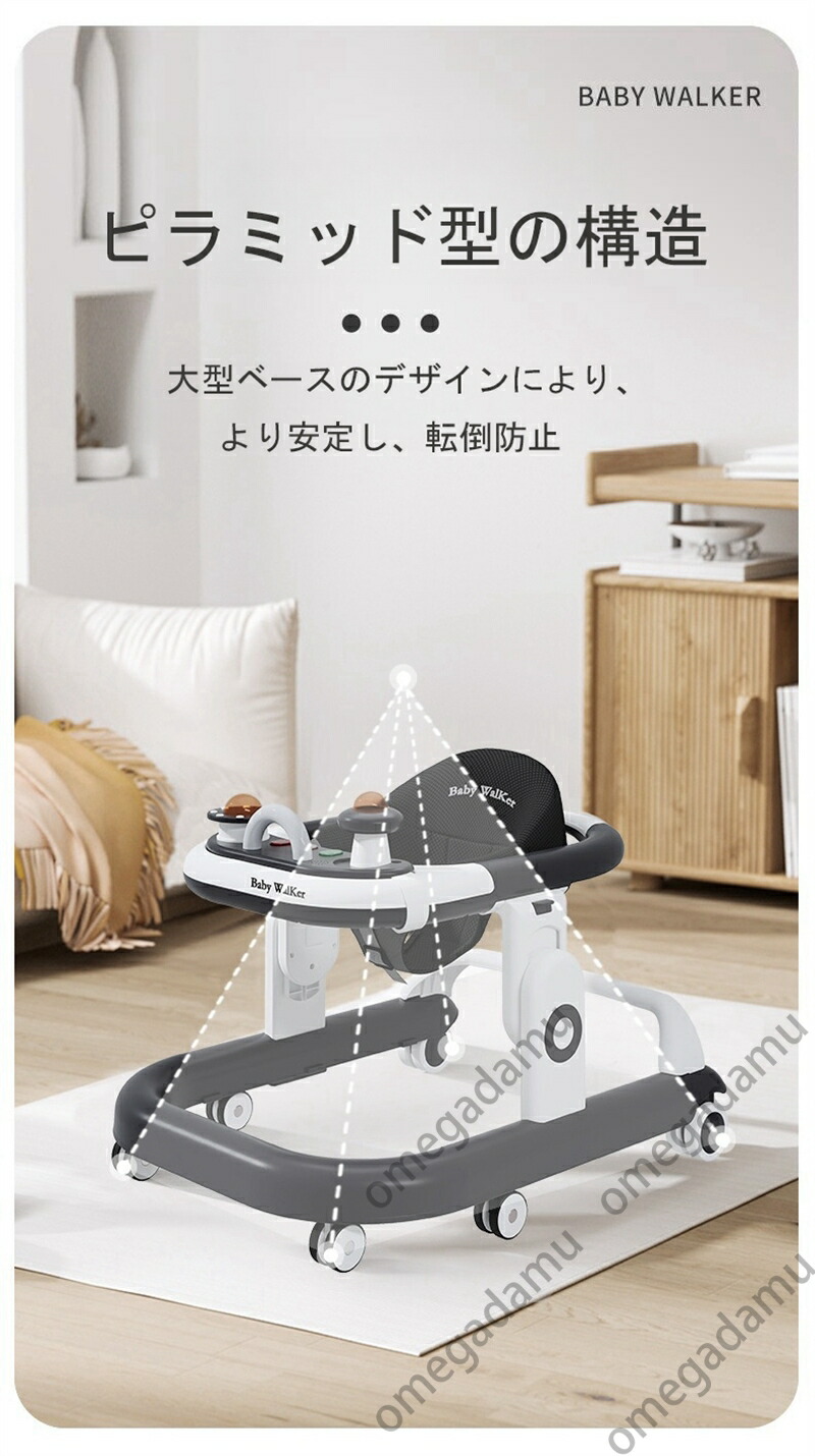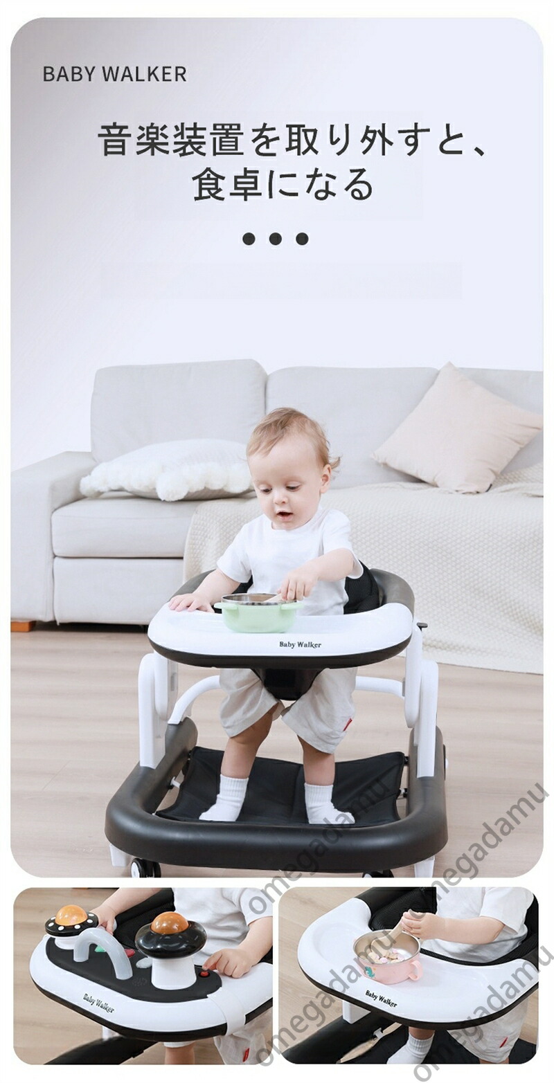 ベビーウォーカー ベビー歩行器 歩行器 赤ちゃん 折りたたみ 高さ調整可能 食事用プレート付き 収納便利 ベビー用品 出産祝い 横転防止