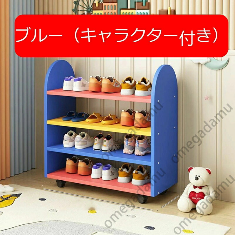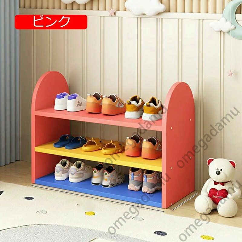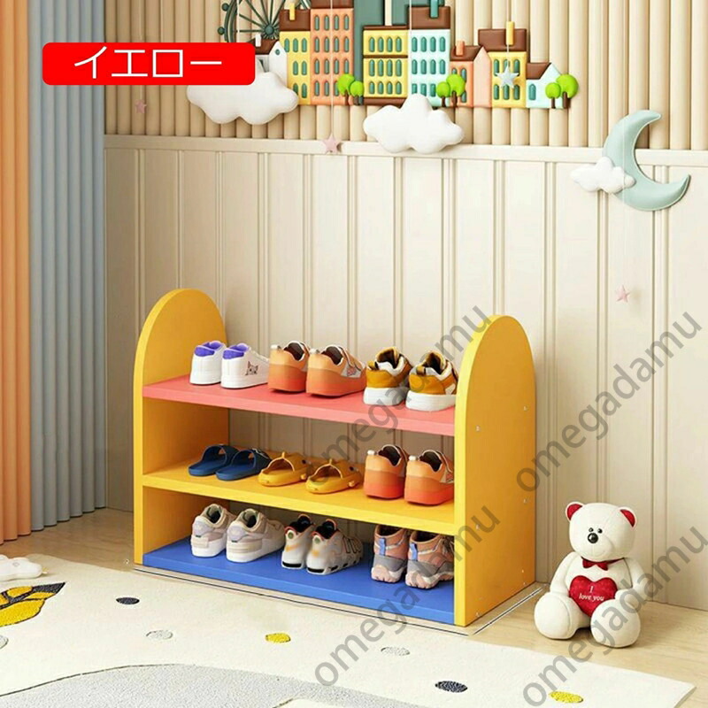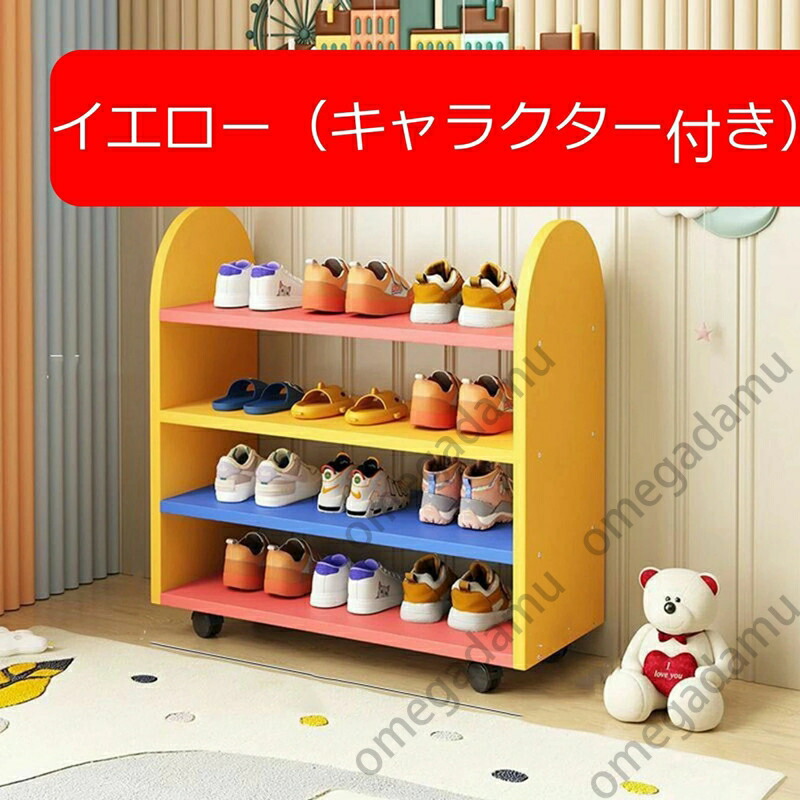 シューズラック幼稚園キッズ用可愛い下駄 ピンク イエロー ブルー ピンク(キャスター付き) イエロー(キャスター付き) ブルー(キャスター付き) 3段 4段 5段