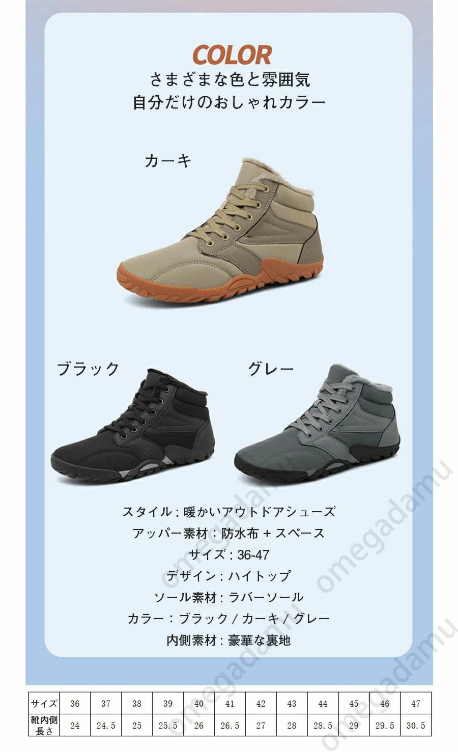メンズ ブーツ 冬用 スノーブーツ 男 メンズ靴 スノーシューズ 早い者勝ち ブラック グレー カーキ 36(24.0cm) 37(24.5cm) 38(25.0cm) 39(25.5cm) 40(26.0cm) 41(26.5cm) 42(27.0cm) 43(28.0cm) 44(28.5cm) 45(29.0cm) 46(29.5cm) 47(30.5cm)