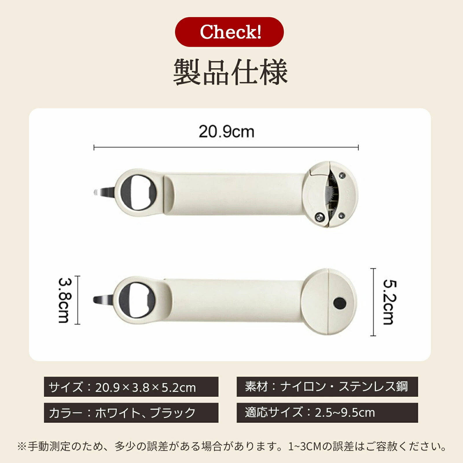 多機能ステンレス缶オープナー 滑り止め キッチン用品 食器 調理器具 早い者勝ち ホワイト ブラック