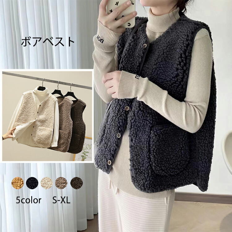 ボアベスト レディース 秋 冬 ボア トップス ベスト 豊富 カーキ ベージュ コーヒー ブラック 褐色 S M L XL
