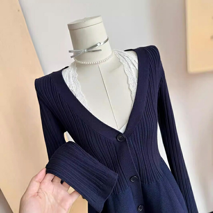 ペプラム ニット カーディガン レディ レディースファッション 続々入荷中 紺色 ブラック ベージュ S M L