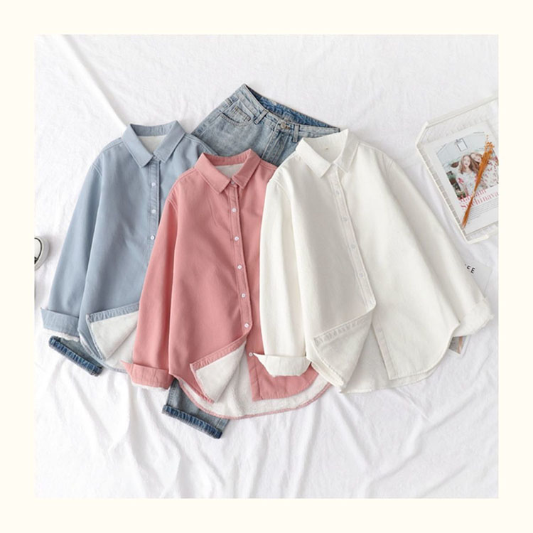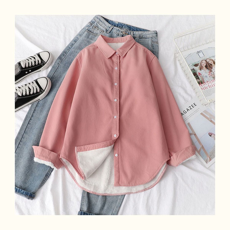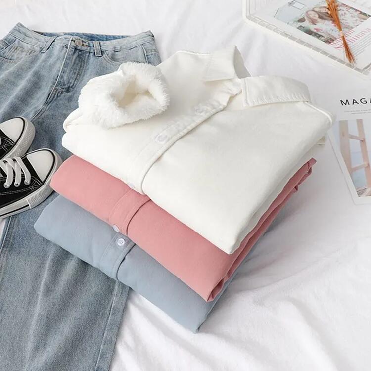 裏起毛 シャツ ボア付き レディース トップス シャツ ブラウス 続々登場 ブルー レッド ホワイト S M L XL 2XL