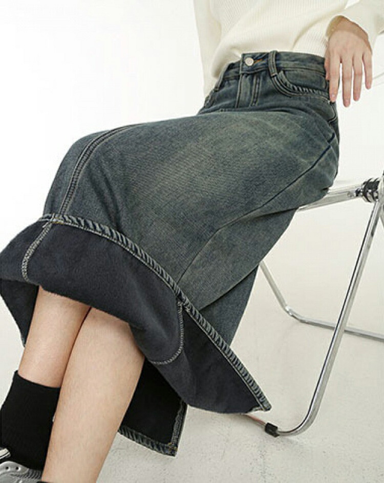 裏起毛 デニムスカート 裏起毛スカート レディースファッション 人気 ブルー ダークグレー S M L XL