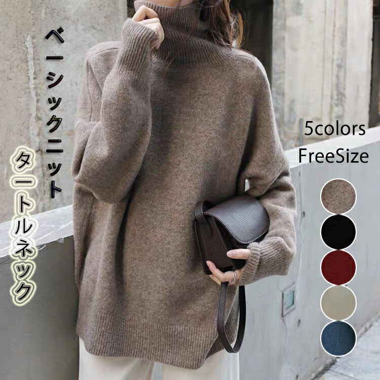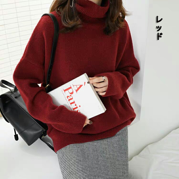 ベーシック ニット タートルネック 体 トップス ニット セーター セーター 早い者勝ち レッド ブラック コーヒー ブルー ベージュ