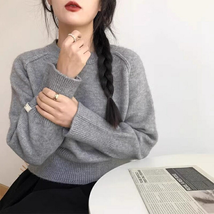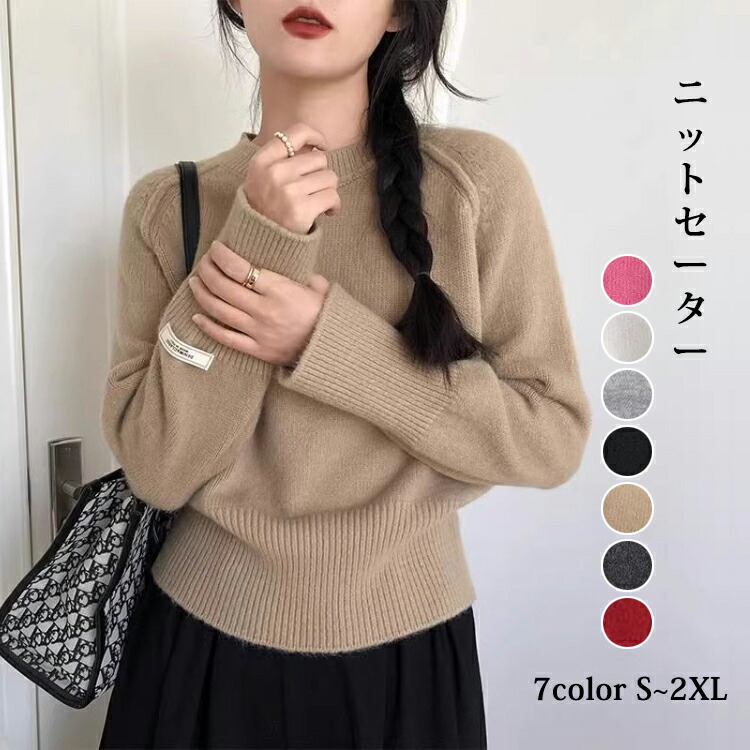 ニット トップス クルーネック リブニ トップス ニット セーター セーター 豊富 ベージュ ダークグレー ライトグレー ブラック バラ色 レッド カーキ S M L XL 2XL