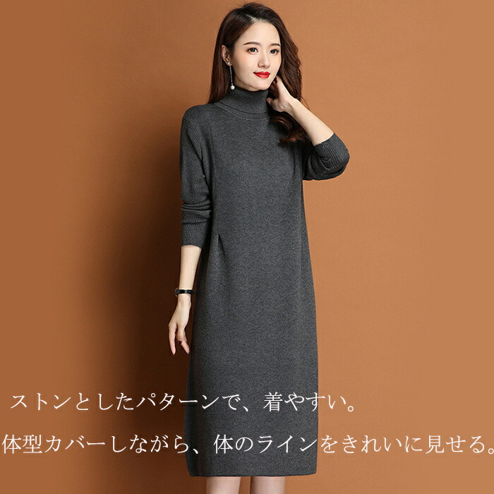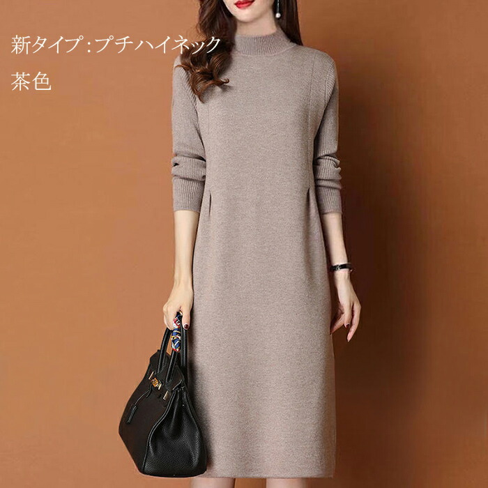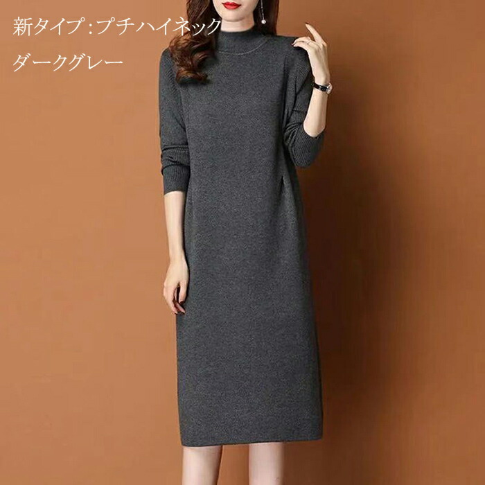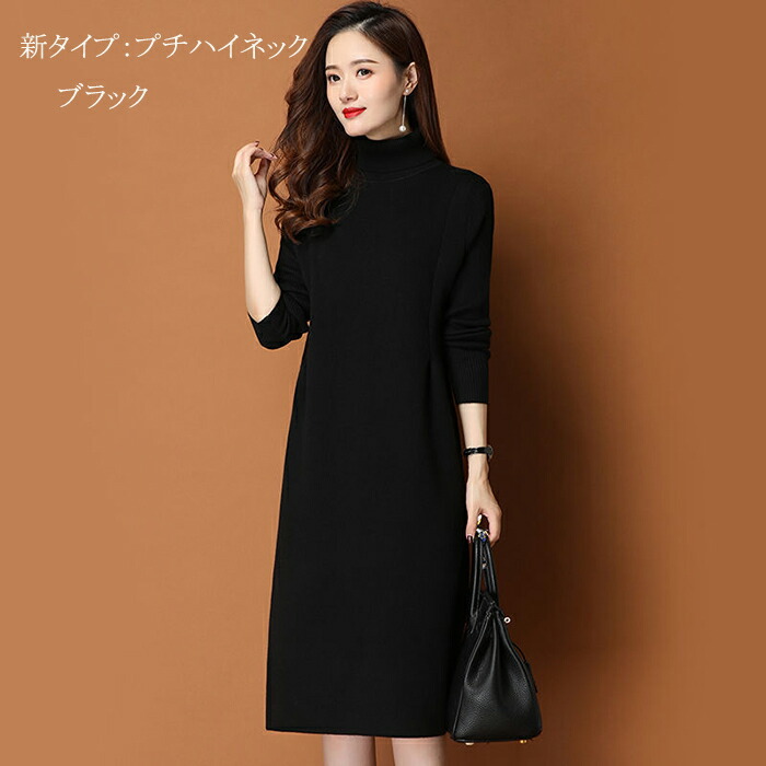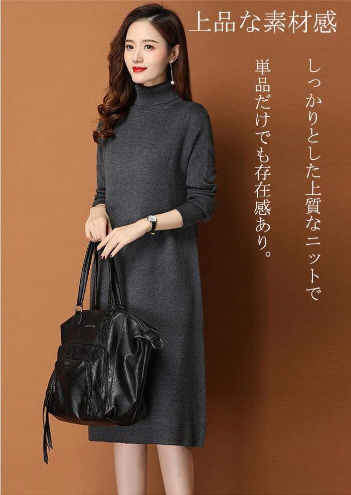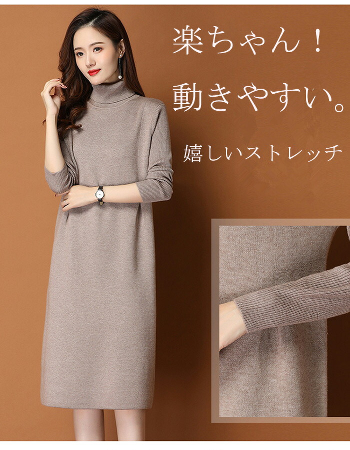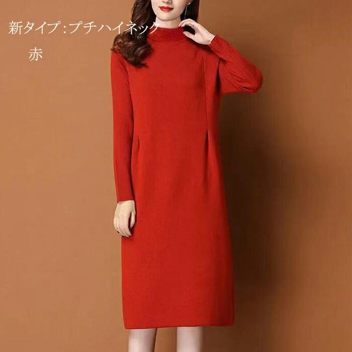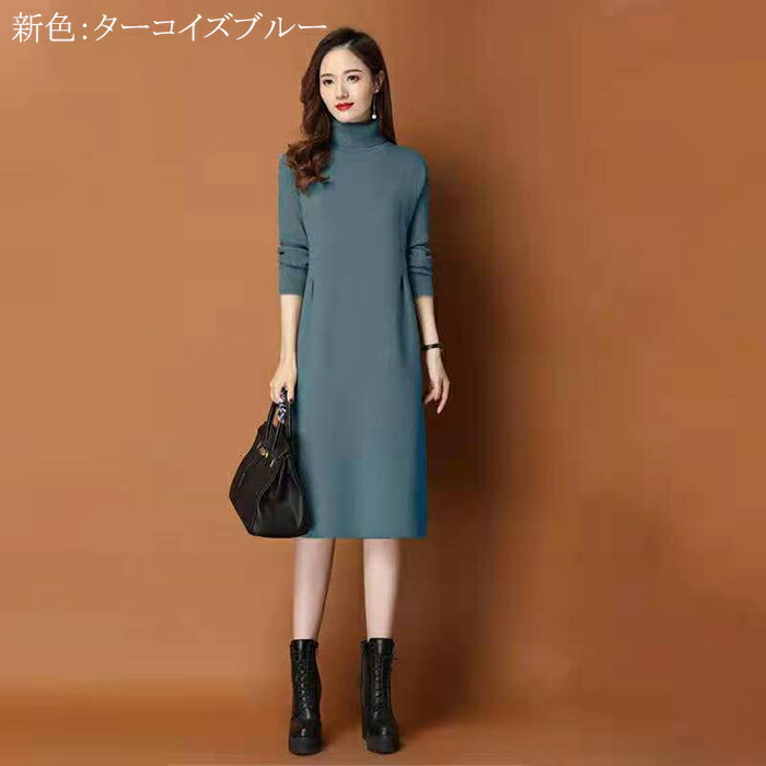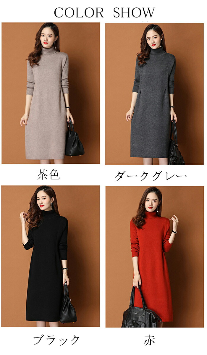 ワンピース レディース 秋冬 ニットワ ワンピース 新登場! 茶色 ダークグレー ブラック 赤 ターコイズブルー ハイネック(タートルネック) プチハイネック