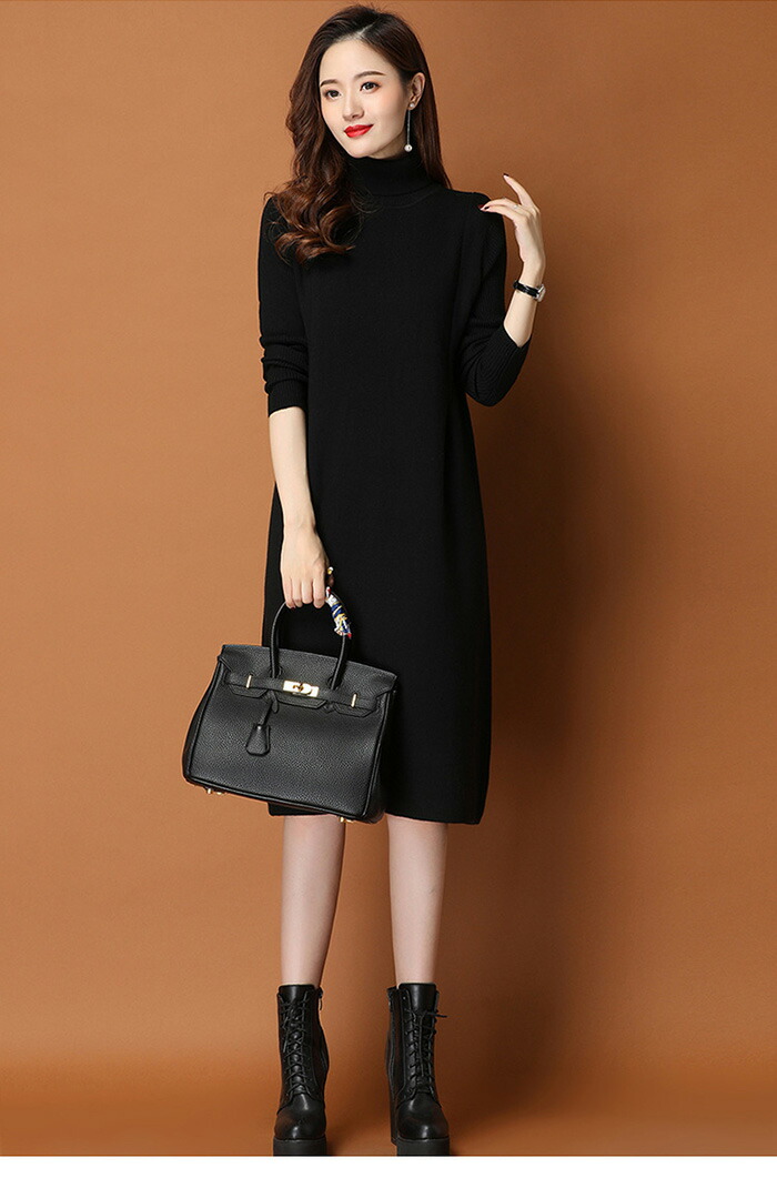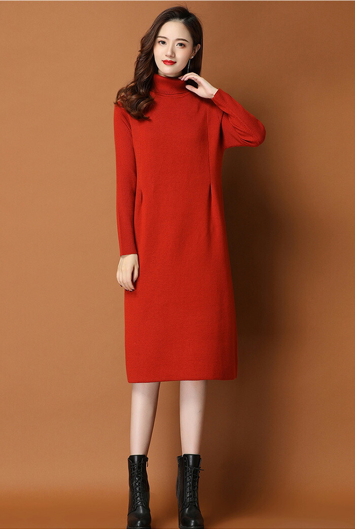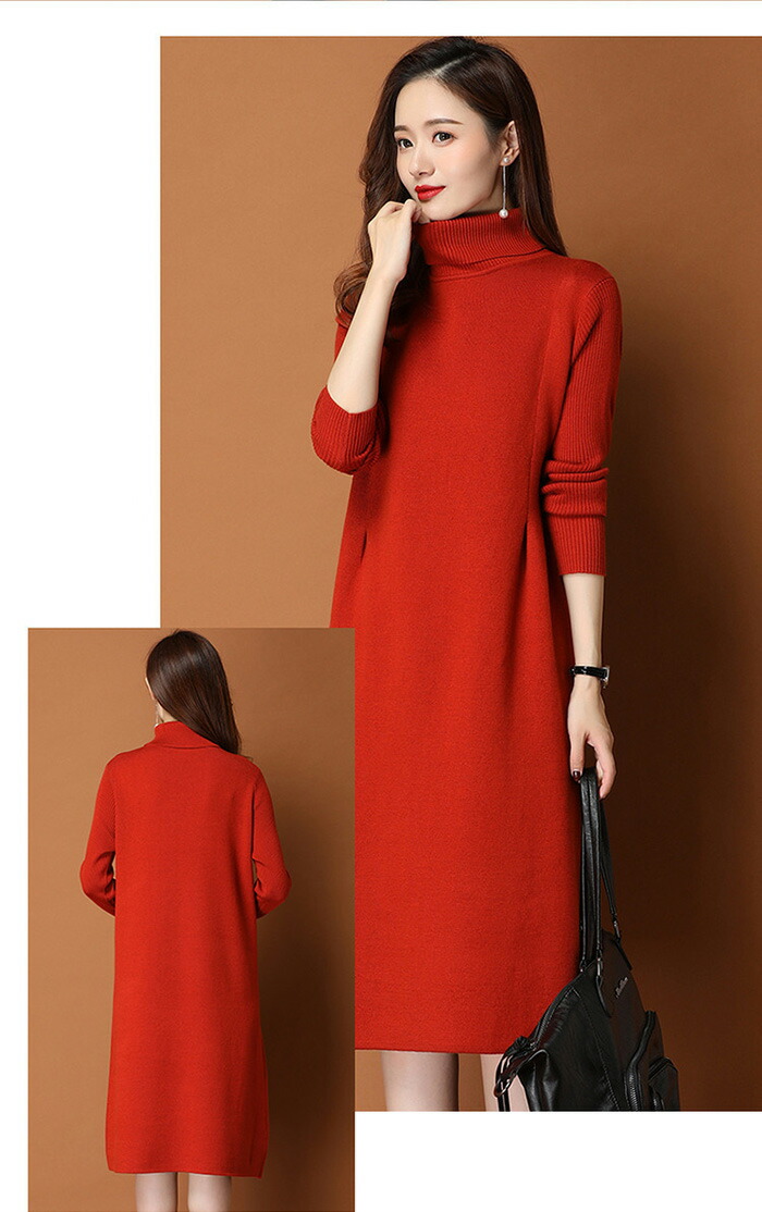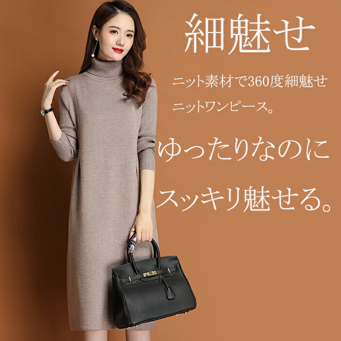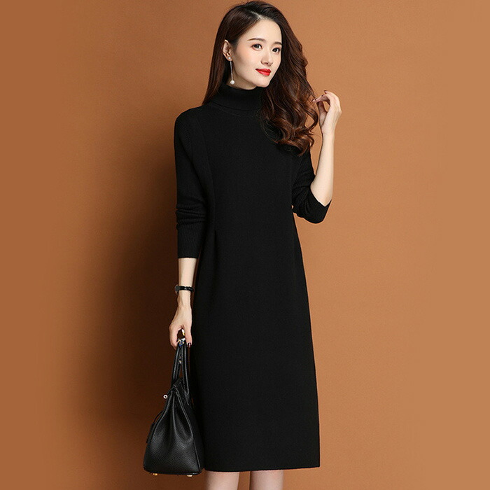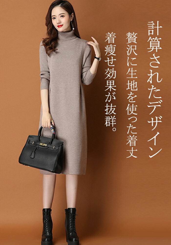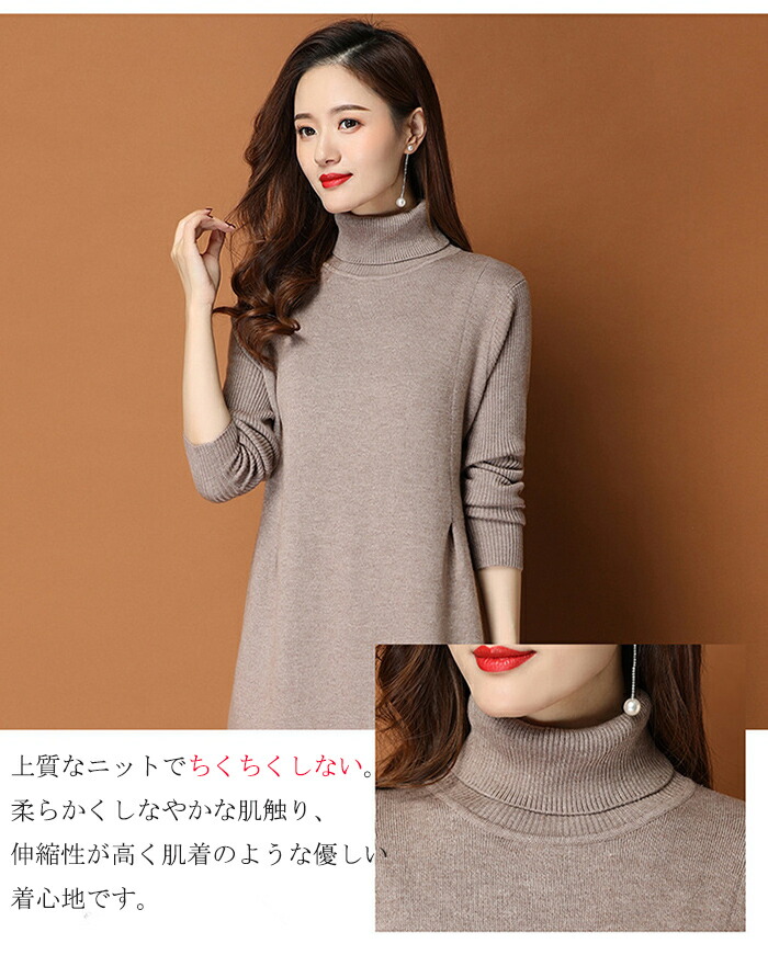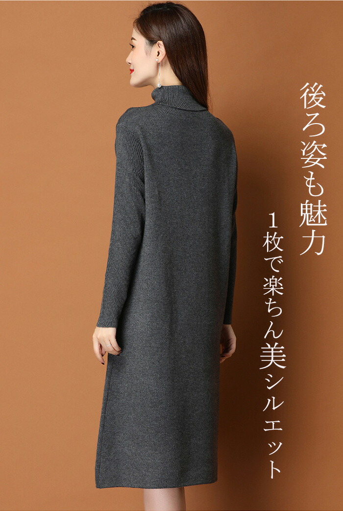 ワンピース レディース 秋冬 ニットワ ワンピース 新登場! 茶色 ダークグレー ブラック 赤 ターコイズブルー ハイネック(タートルネック) プチハイネック