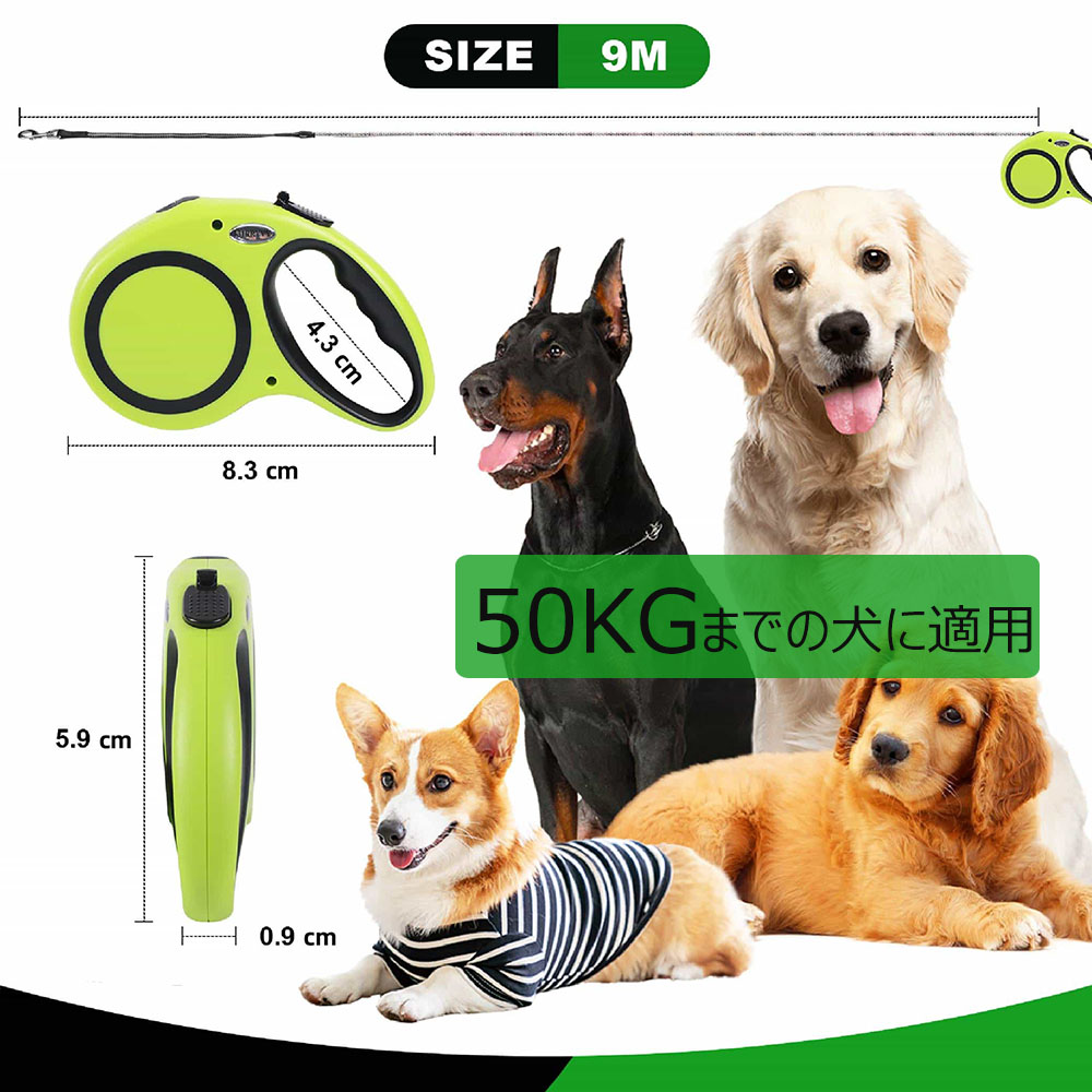 伸縮式 自動巻き取り 犬用リード 9m ペット ペットグッズ 早い者勝ち グリーン ブルー ホワイト ブラック
