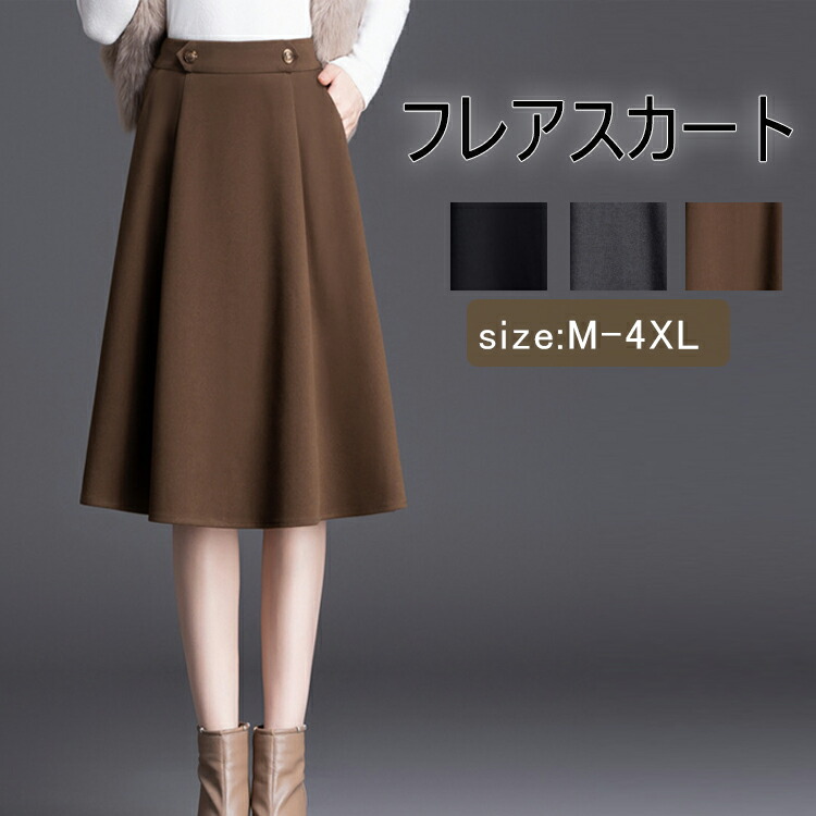 スカート レディース フレアスカート ボトムス スカート 人気 グレー キャメル ブラック M L XL 2XL 3XL 4XL