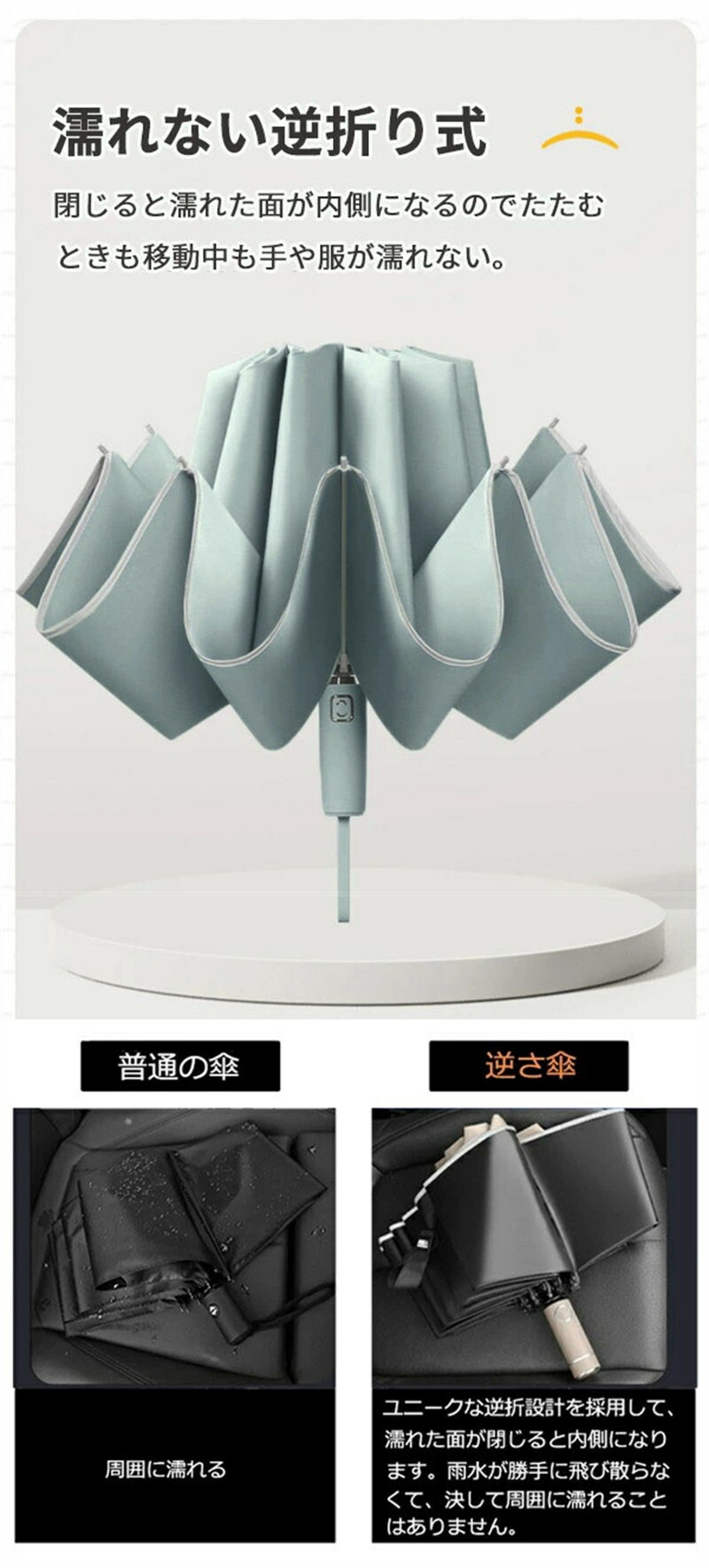 逆さ傘 折りたたみ傘 自動開閉 10本 傘 男女兼用雨傘 新登場! ライトグリーン ピンク ベージュ ダークグリーン ネイビー ブラック
