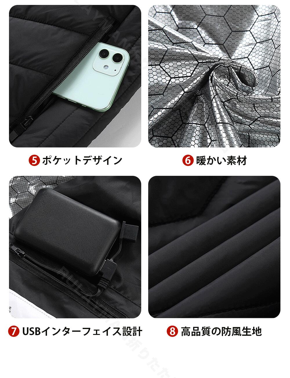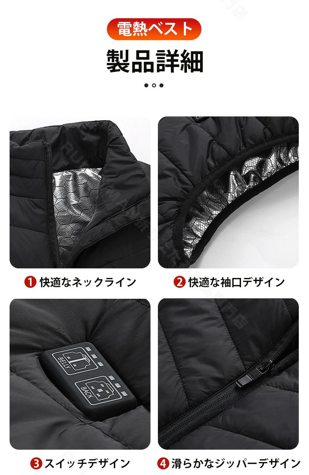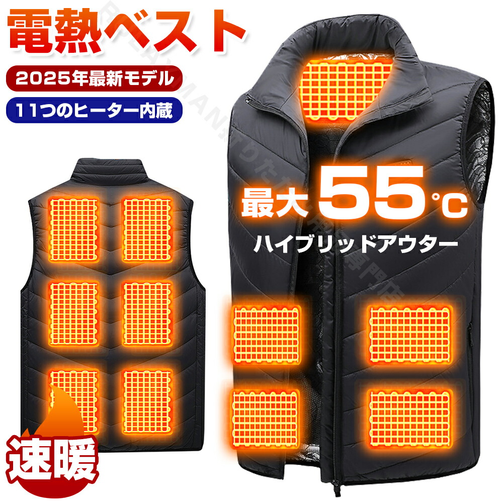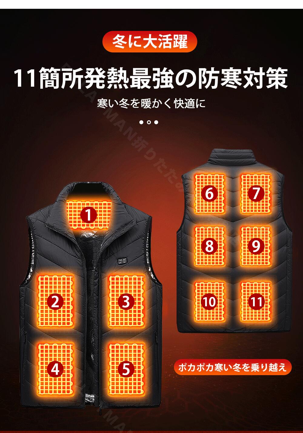電熱ベスト ヒートジャケット バイクウェア 加熱パネル11枚 温度調節可能 電熱ジャケット 温熱 USB充電式 温熱ベスト 洗える 極暖 アウター 中綿 冬 秋 アウトドア ヒートベスト アウトド 雪