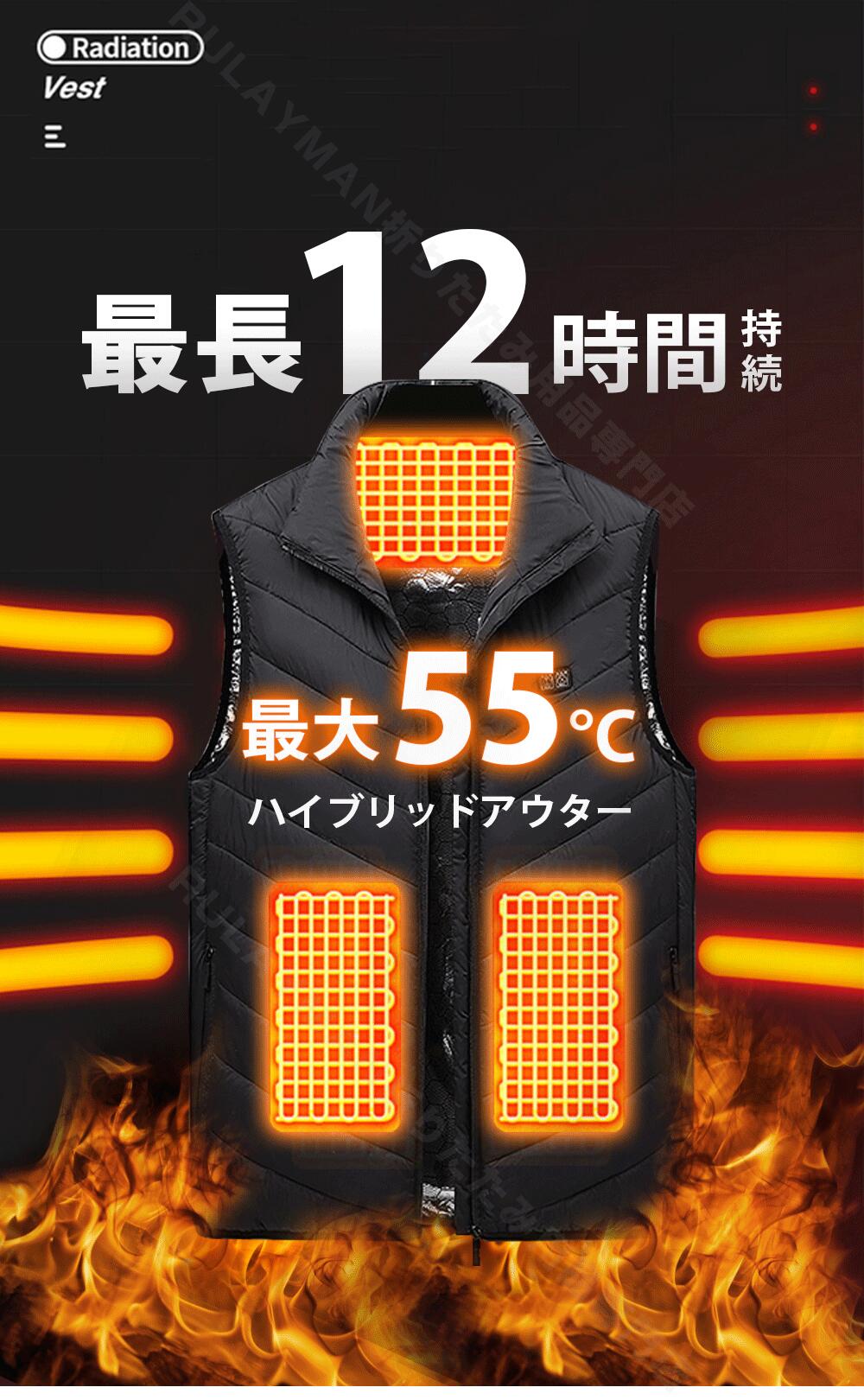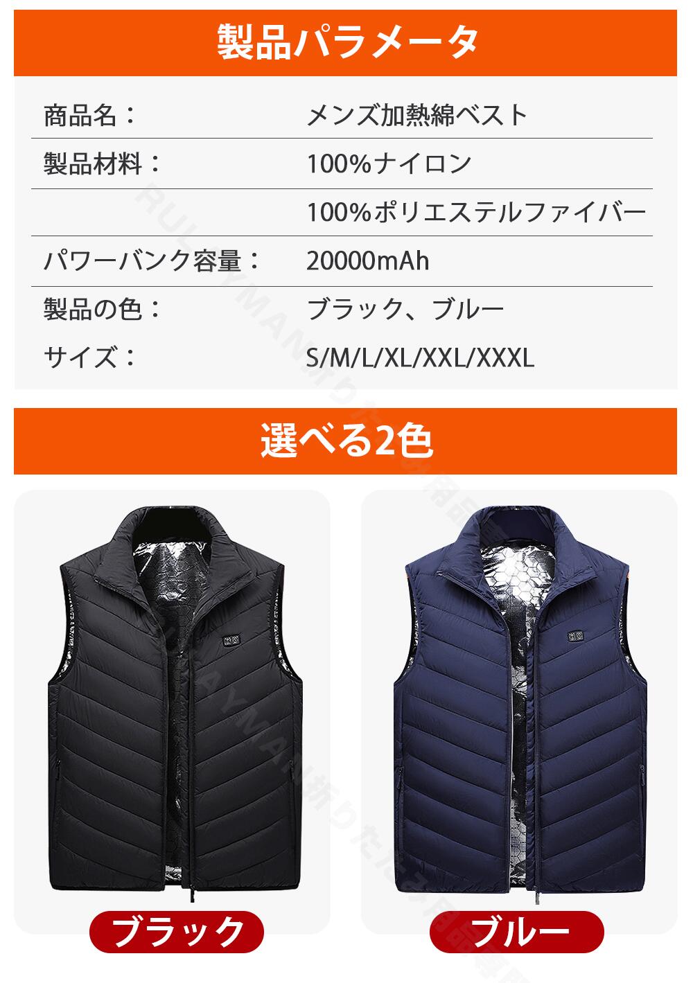 電熱ベスト ヒートジャケット バイクウ メンズファッション 早い者勝ち ブラック ブルー S M L XL XXL XXXL