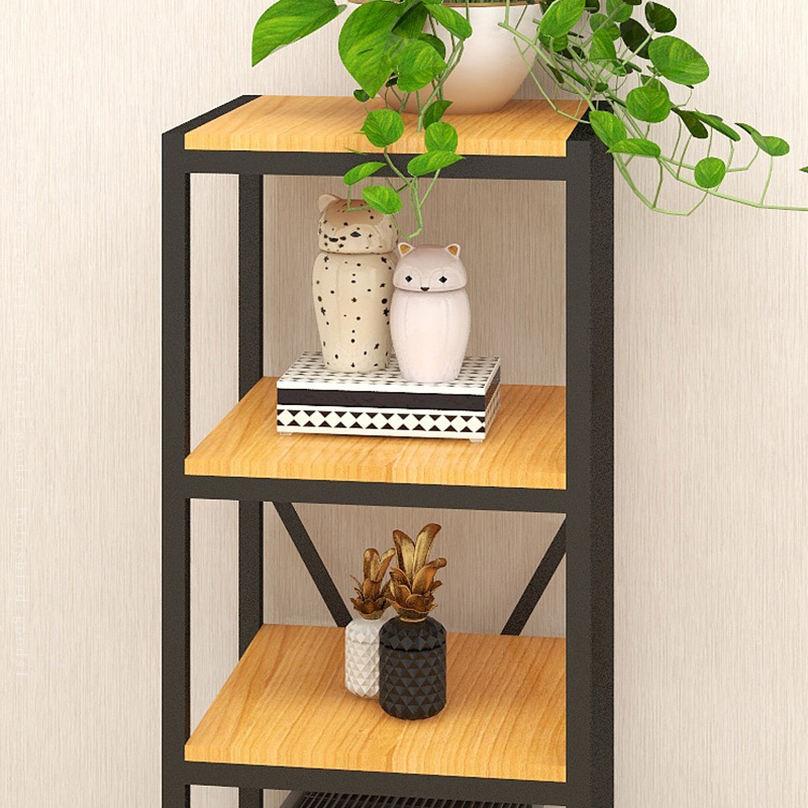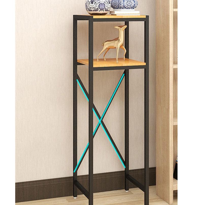 :オシャレなゴミ箱上ラックは木製の棚板を採用し、背部には金属製のクロスバーを備えています。