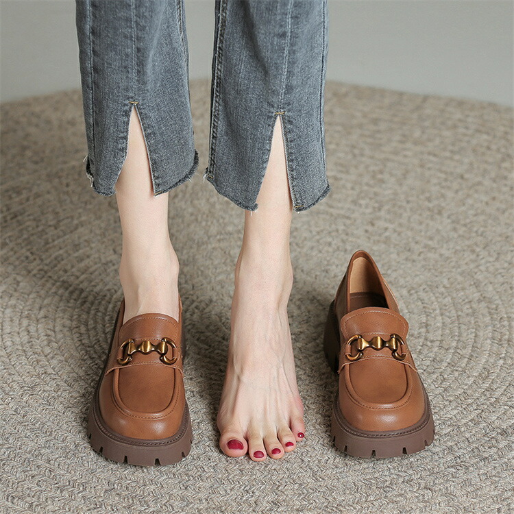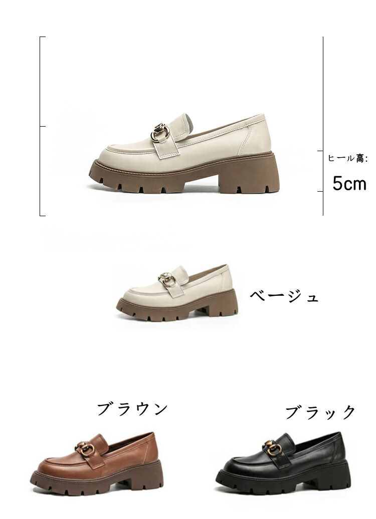 ローファー チャンキーヒール 厚底 ビ レディース靴 ローファー 豊富 ブラウン ブラック ベージュ 34(22.0cm) 35(22.5cm) 36(23.0cm) 37(23.5cm) 38(24.0cm) 39(24.5cm) 40(25.0cm)