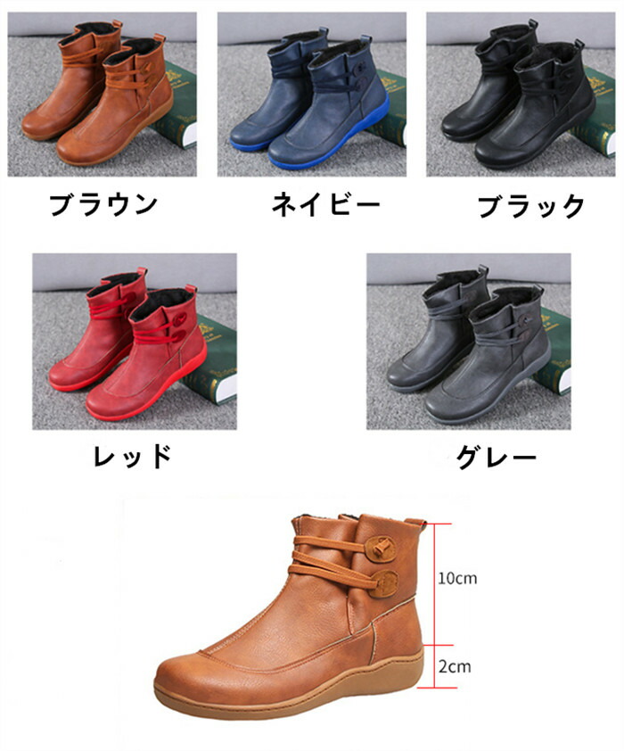 ブーティーレディース ラウンドトゥ ブ 靴 新登場! ブラック グレー ネイビー ブラウン レッド 35(22.5cm) 36(23.0cm) 37(23.5cm) 38(24.0cm) 39(24.5cm) 40(25.0cm) 41(25.5cm) 42(26.0cm) 43(26.5cm)