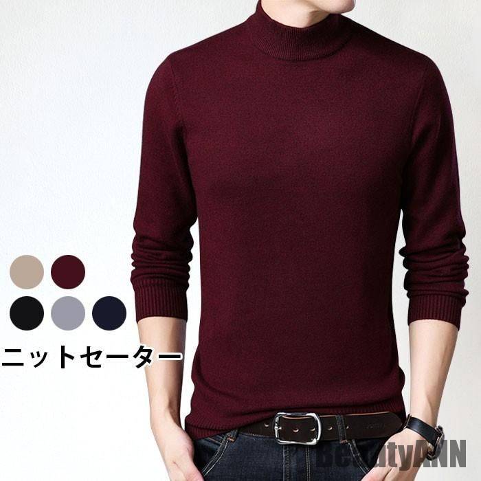 新生活 ニットセーター メンズ ハイネ トップス ニット セーター 豊富な品揃え ネイビー ライトグレー ワインレッド ブラック キャメル 170(M) 175(L) 180(XL) 185(2XL) 190(3XL)
